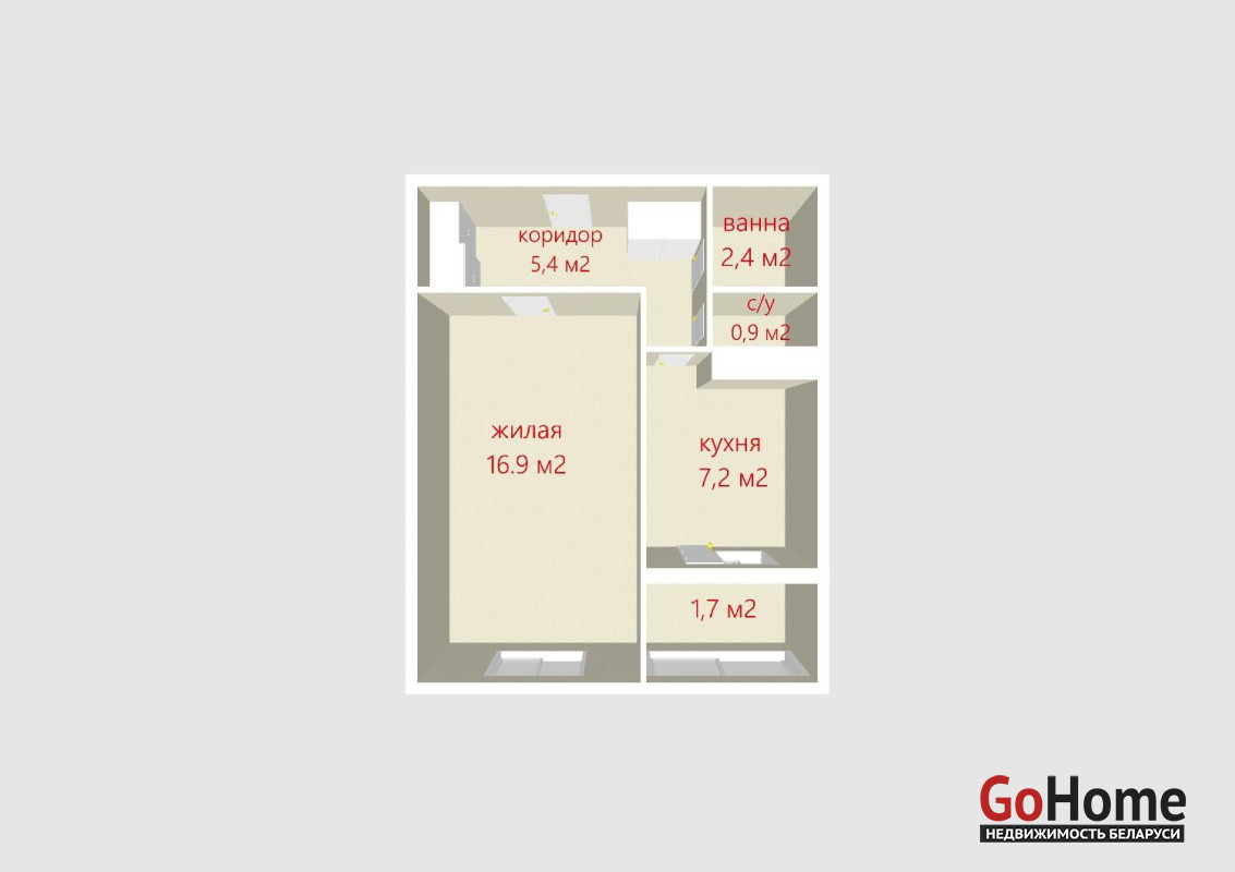 Жилая комната 16.9 м2 оснащена необходимой мебелью для комфортного проживания!