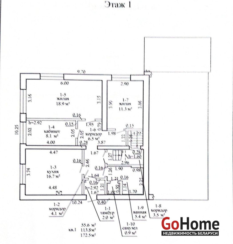 На первом этаже распологается просторная кухня и три изолированные комнаты, санузел. Есть возможность одну из комнат оборудовать под личный кабинет.