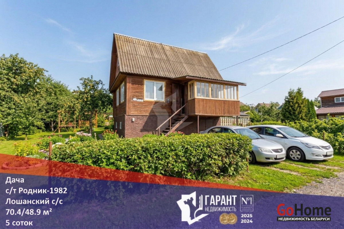 На участке в 5 соток высажены плодовые деревья и кустарники. Предусмотрена мангальная зона, беседка, качели. В садовое товарищество можно доехать на маршрутке. Приезжает автолавка . Больше магазинов располагаются в 5-ти минутах езды на автомобиле в агрогородке Лошаны .Летом очень зелено и красиво, зимой ограждение радует глаз.