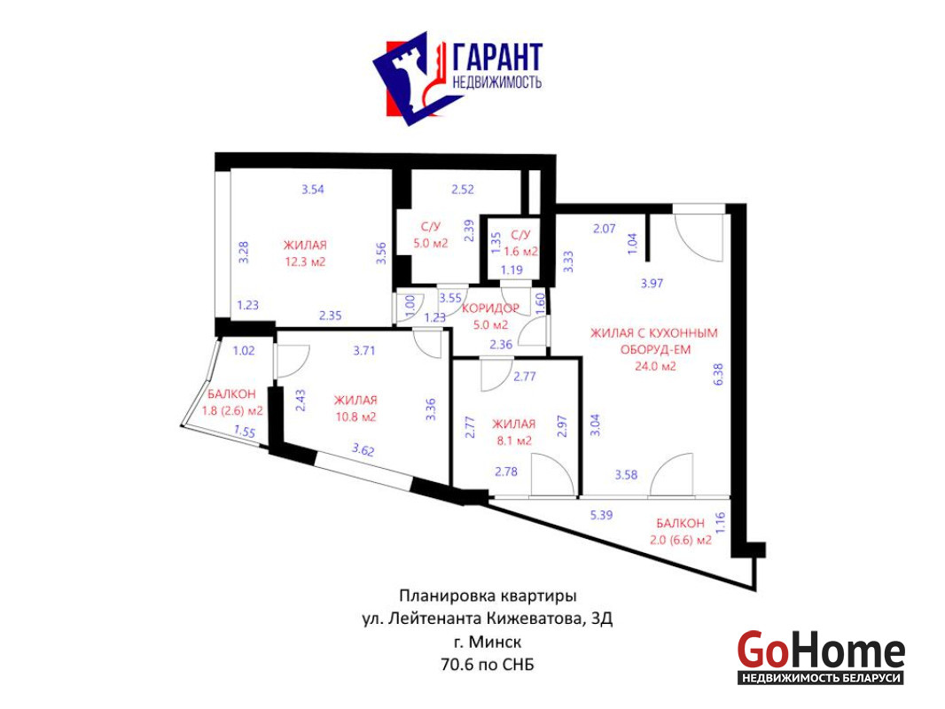 • Площадь СНБ – 70.6 м2, общая площадь – 66.8 м2, жилая 55.2 м2. Здесь достаточно места для всей вашей семьи!