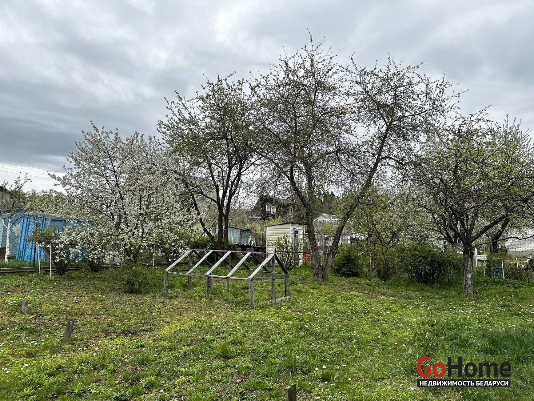 На участке растут плодовые деревья и кустарники: яблоня, вишня, калина, крыжовник и смородина.