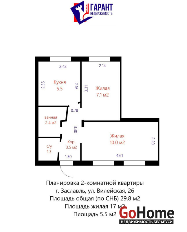Продается аккуратная двухкомнатная квартира в ближайшем пригороде Минска, г.Заславль ул.Вилейская, 26