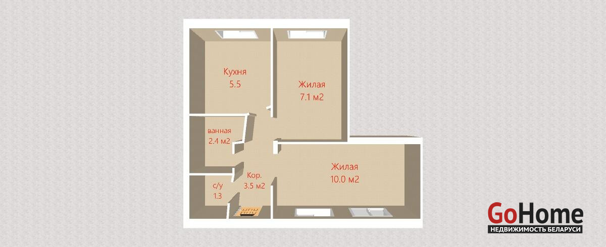 Особенностью квартиры является отдельный вход и небольшой палисадник