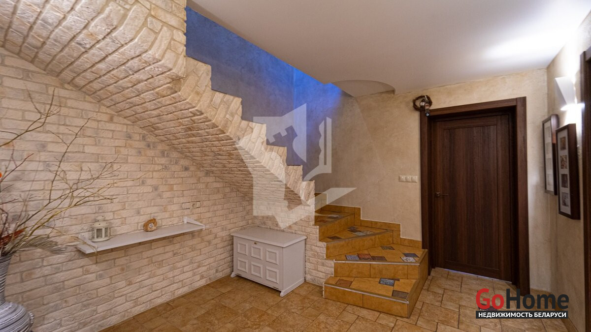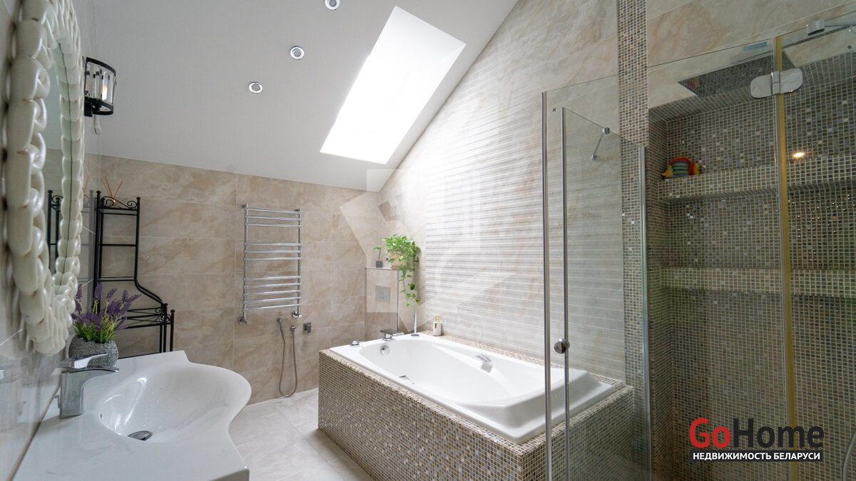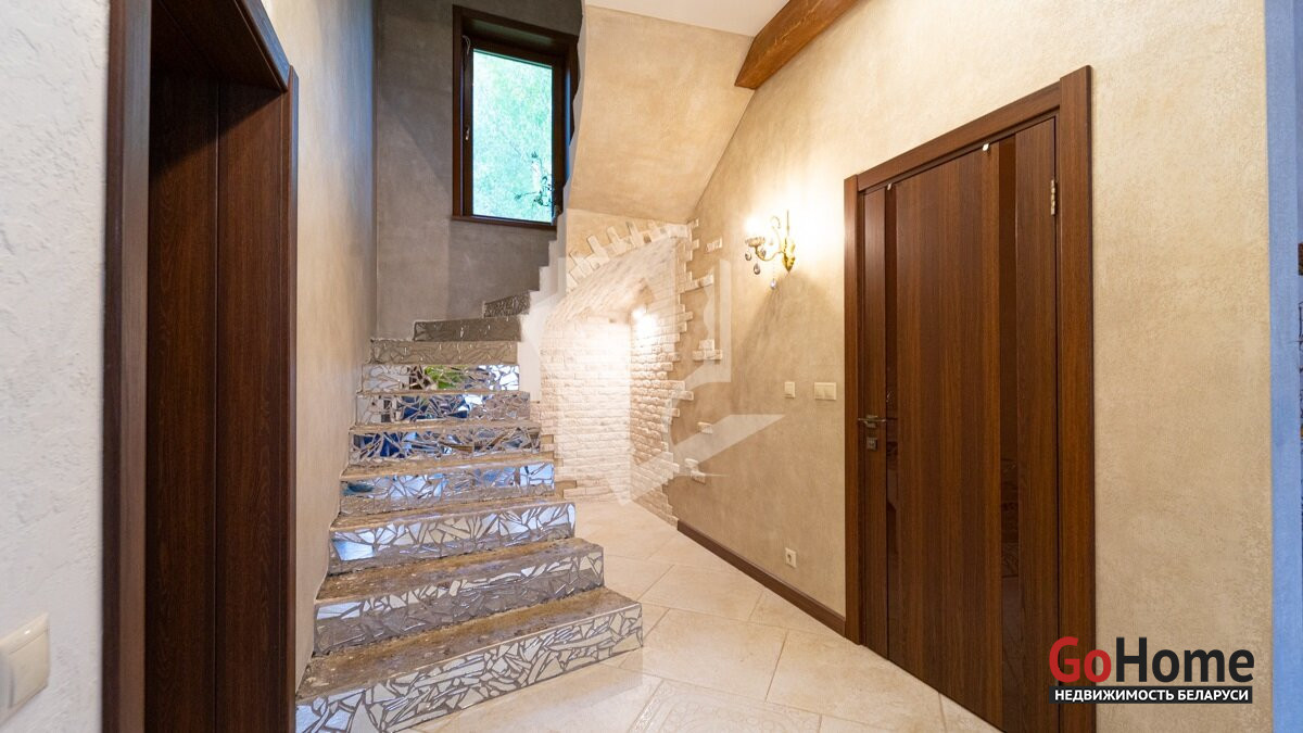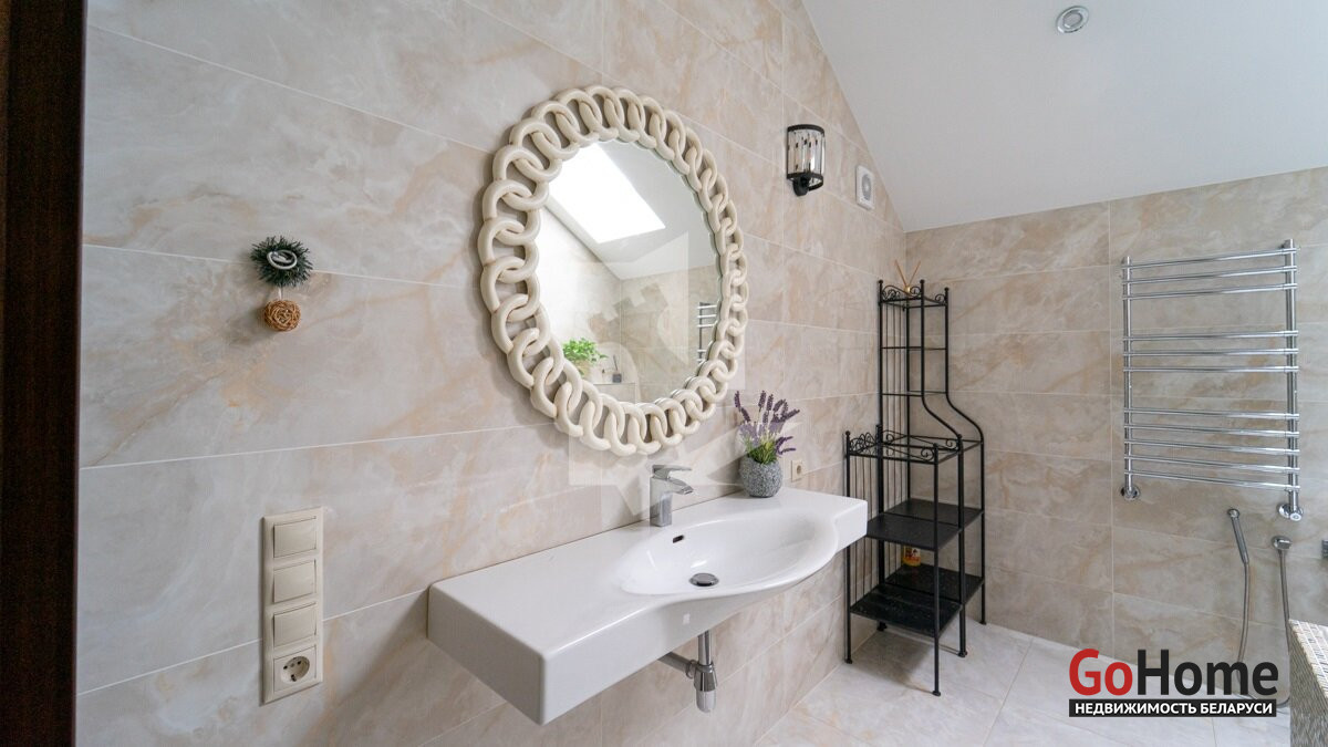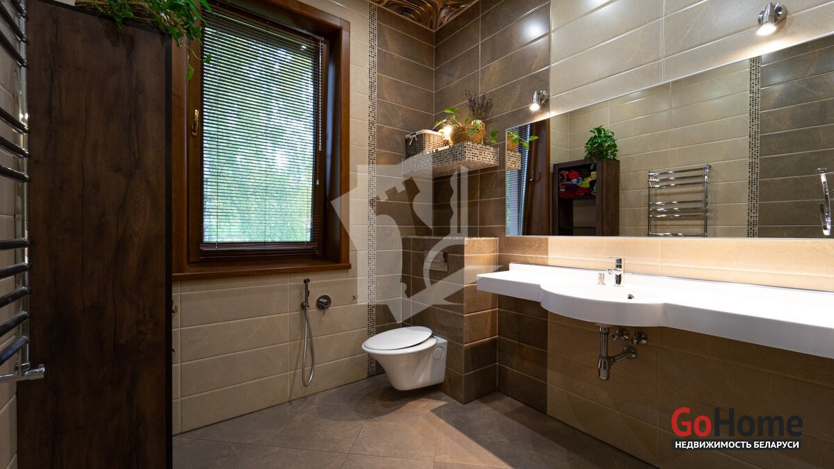 В доме несколько уровней каждый из которых функциональны. На первом этаже расположены функциональная кухня с современным оборудованием, просторная обеденная зона, где вы всей семьей будете собираться за ужином, уютная гостиная с отличным камином GLIVI у которого можно всегда согреться холодными вечерами. Так же на этаже есть кабинет (комната) и санузел. На втором этаже (мансардном) расположены 3 спальни, гардеробная и санузел. Из большей комнаты есть выход на балкон, где вы сможете любоваться прекрасным видом. Цокольный этаж представляет собой в основном техническую зону, где размещены котельная и гаражные помещения на 2 автомобиля. При этом есть просторная гардеробная и пространство, оборудованное под погреб. Так же имеется санузел. Всего санузлов в доме три. Во всех помещениях выполнен отличный ремонт материалы использовались Испанские, Итальянские Французские и других стран производителей. На полу постелена плитка, в комнатах шведский ламинат, на стенах декоративная штукатурка и обои, установлены качественные окна Schuco. В доме высокие потолки, что обеспечивает ощущение пространства.