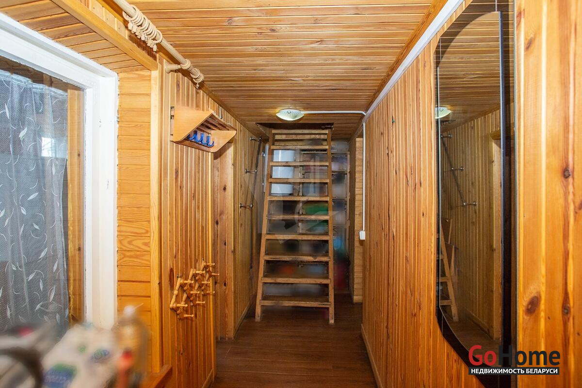 На полу уложен ламинат, линолеум, стены обшиты вагонкой, окна деревянные и ПВХ.