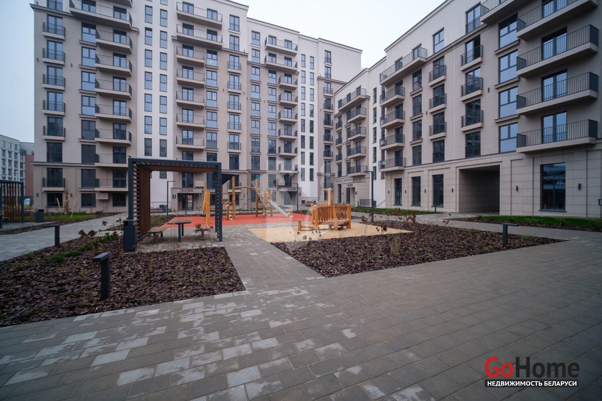 • современная, очень продуманная детская площадка с безопасным покрытием