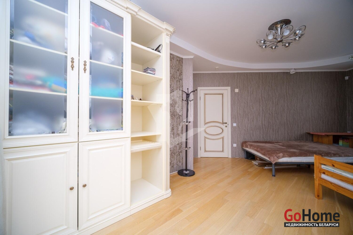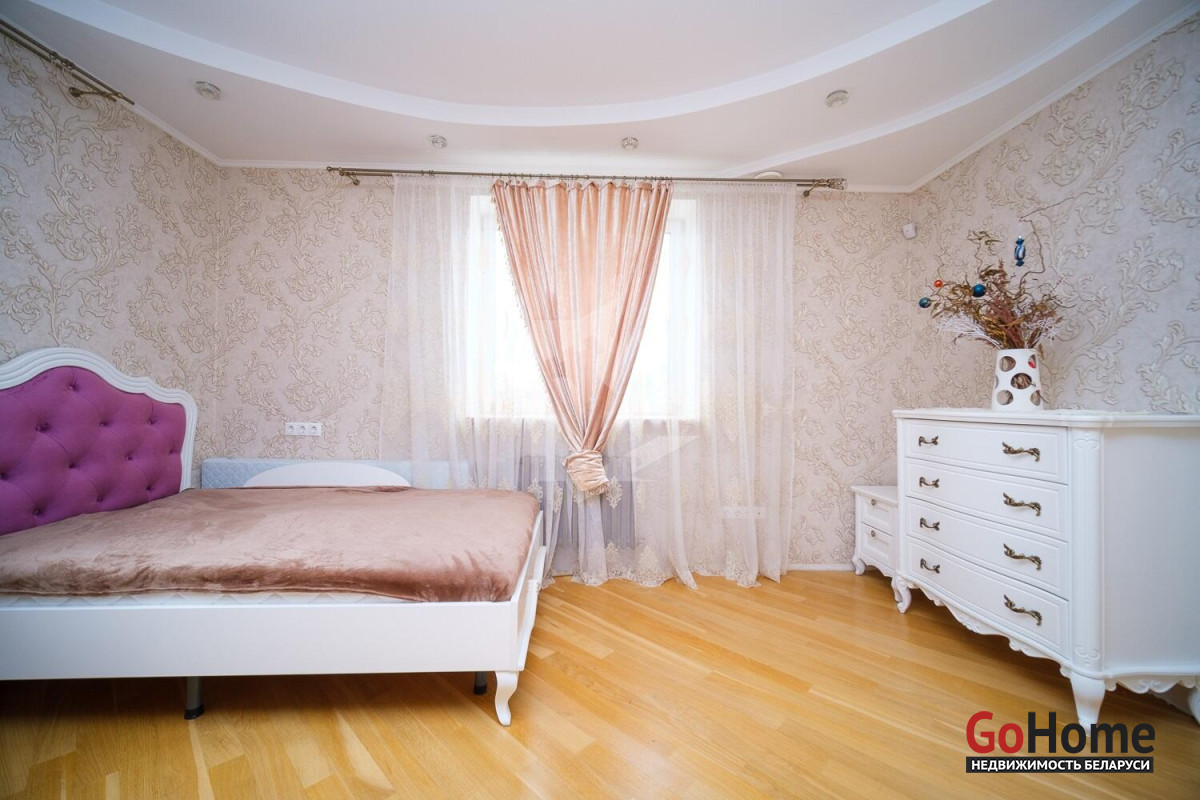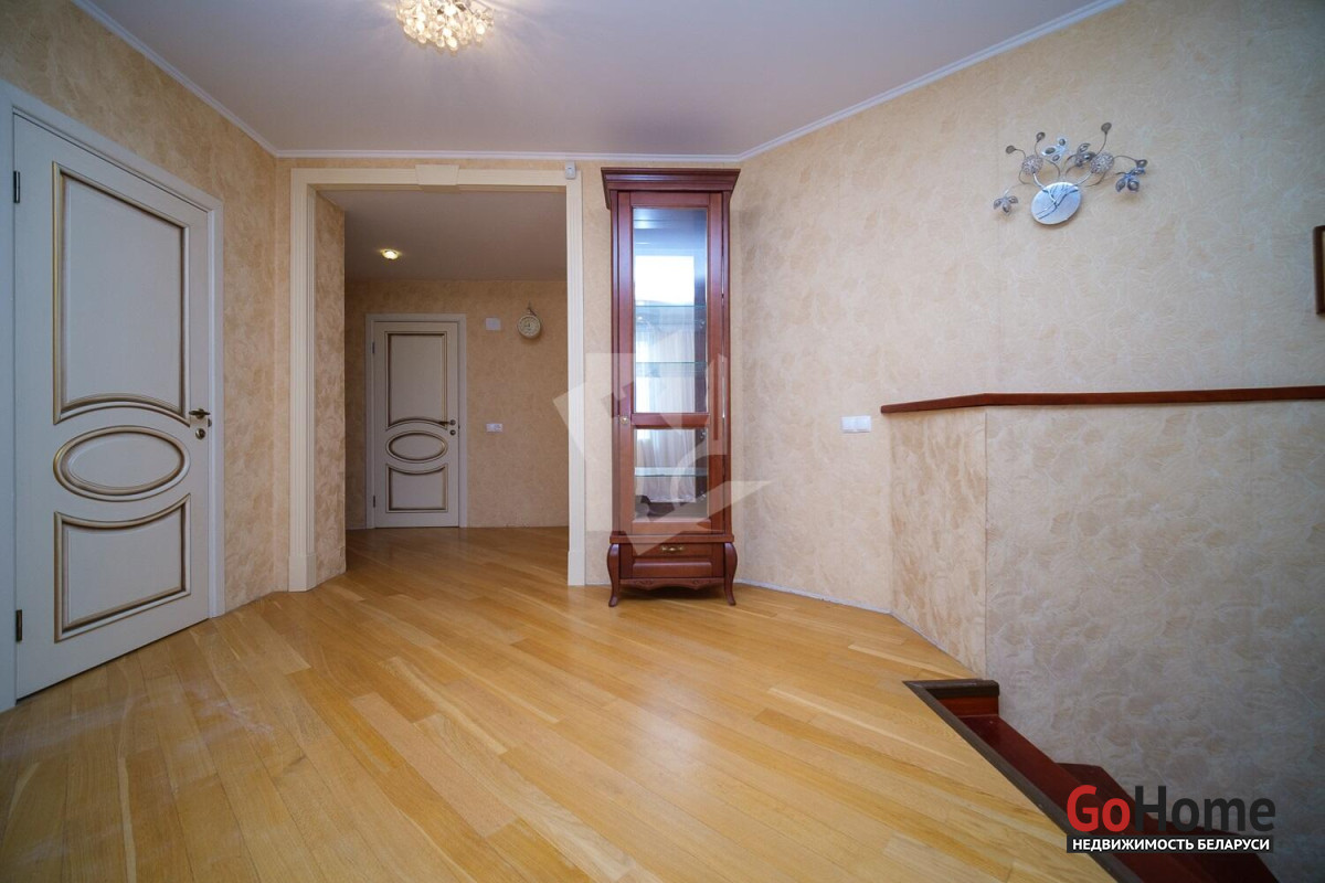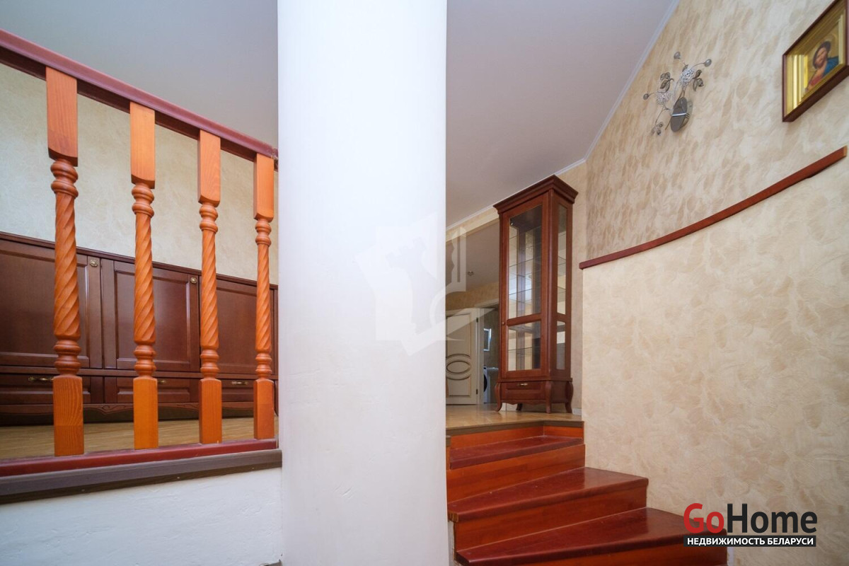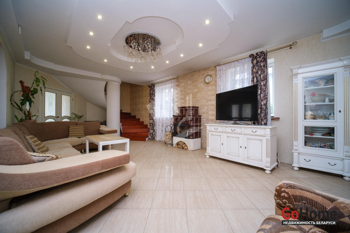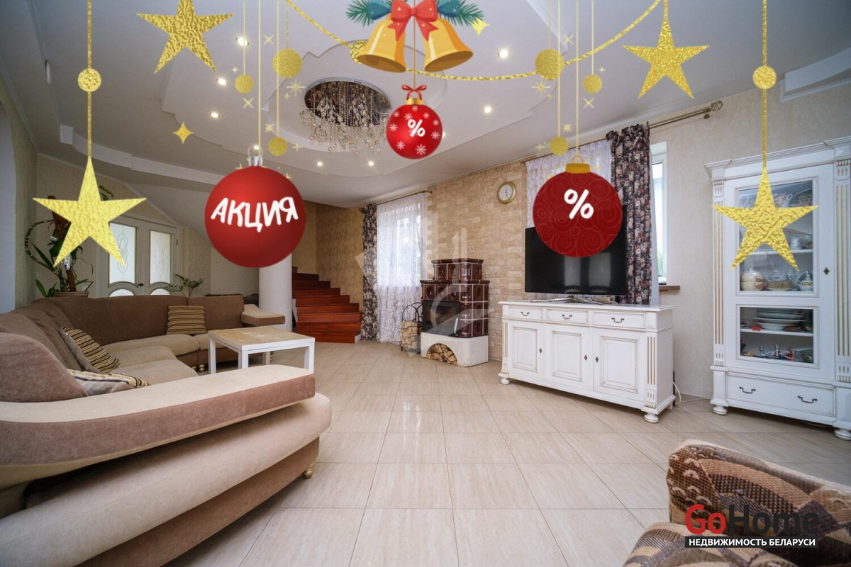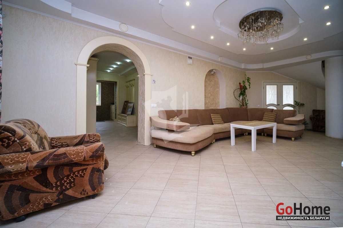 На цокольном этаже гараж с секционными воротами, бойлерная, санузел, комната для отдыха (тренажерный зал), баня (дровяная печь), душевая с бассейном (требует доработки).