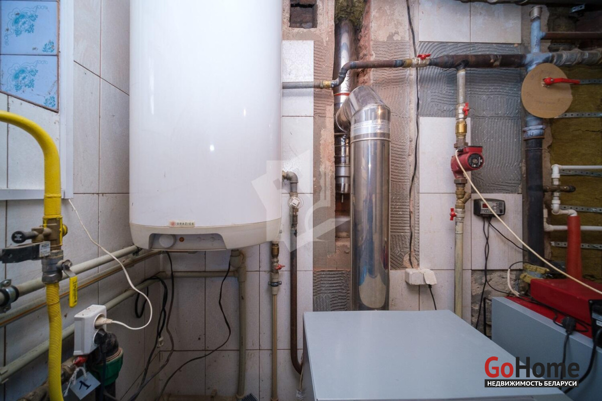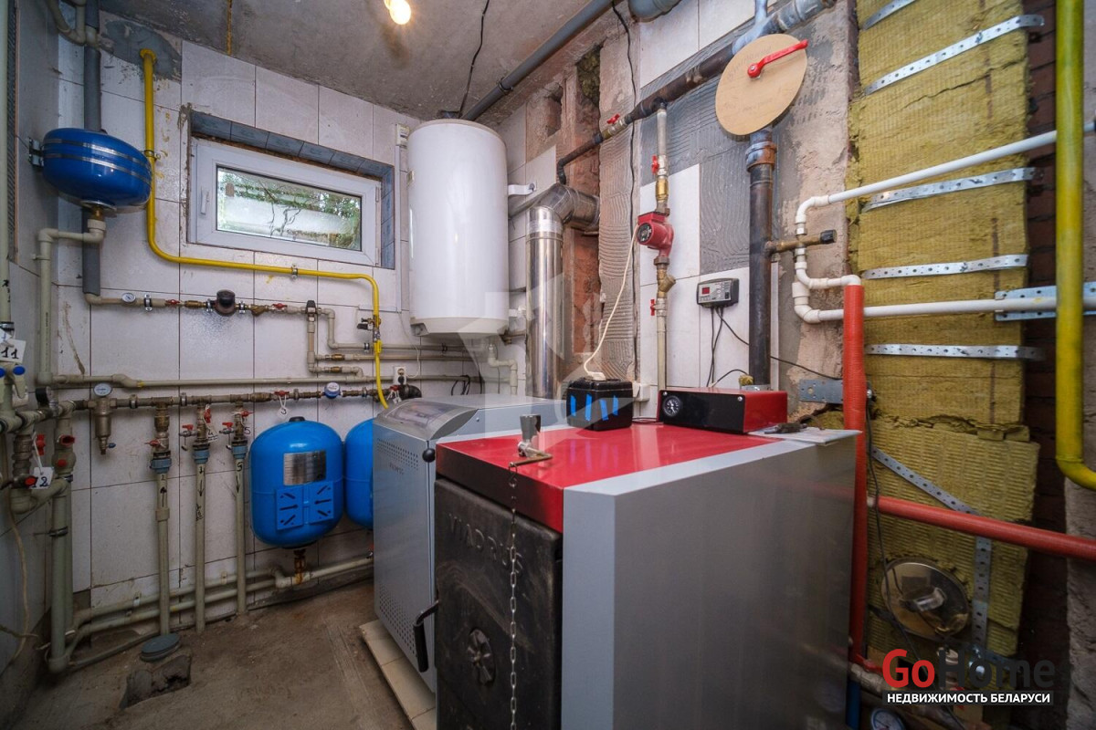 В жилом доме 2 счётчика (двух-фазный и трех-фазный), приточно-вытяжная система, 2 котла Viadrus: 2-ух контурный газовый и твердотопливный (на дровах). Чугунные батареи. Окна Rehau. Дубовый паркет, хрустальные люстры, обои Roberto Cavalli, плитка производства Италия, Польша.