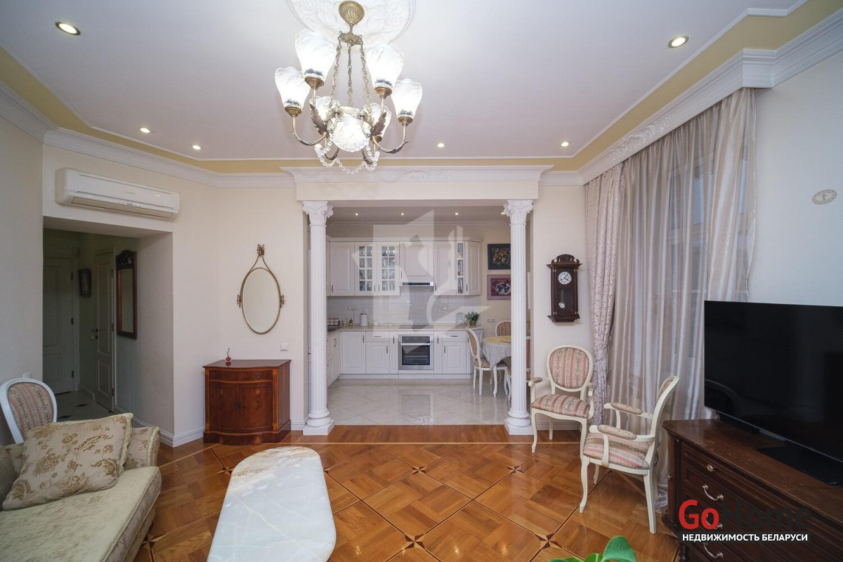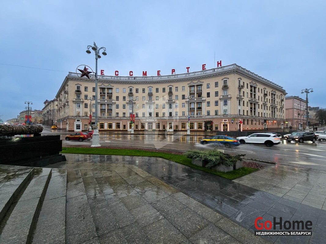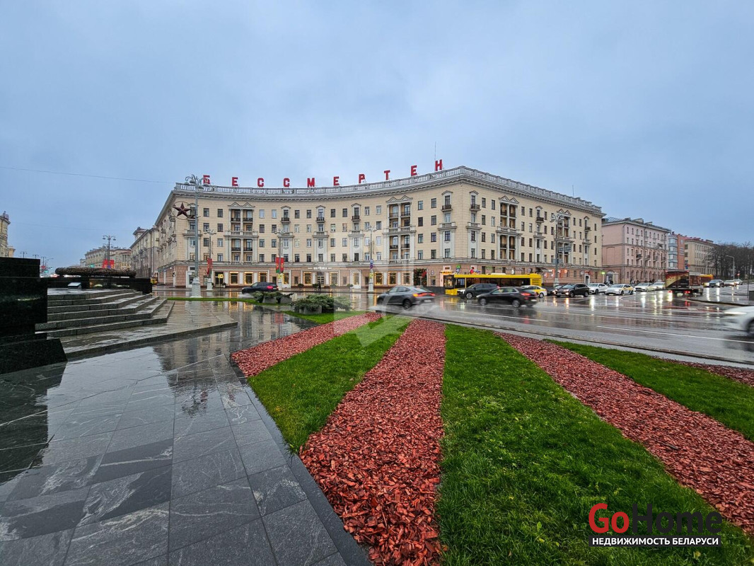 Этот дом всегда будет в центре внимания: монумент Победы, через дорогу расположен клубный жилой комплекс премиум класса DEPO, парк культуры и отдыха имени М. Горького, центральный детский парк, река Свислочь, парк имени Янки Купалы, сквер имени М. Казея, Большой театр Беларуси и Белорусский цирк, станция метро Площадь Победы, рядом с домом остановки наземного транспорта, во дворе достаточное количество мест для парковки автомобиля, продуктовый магазин, легендарное кафе «Берёзка».