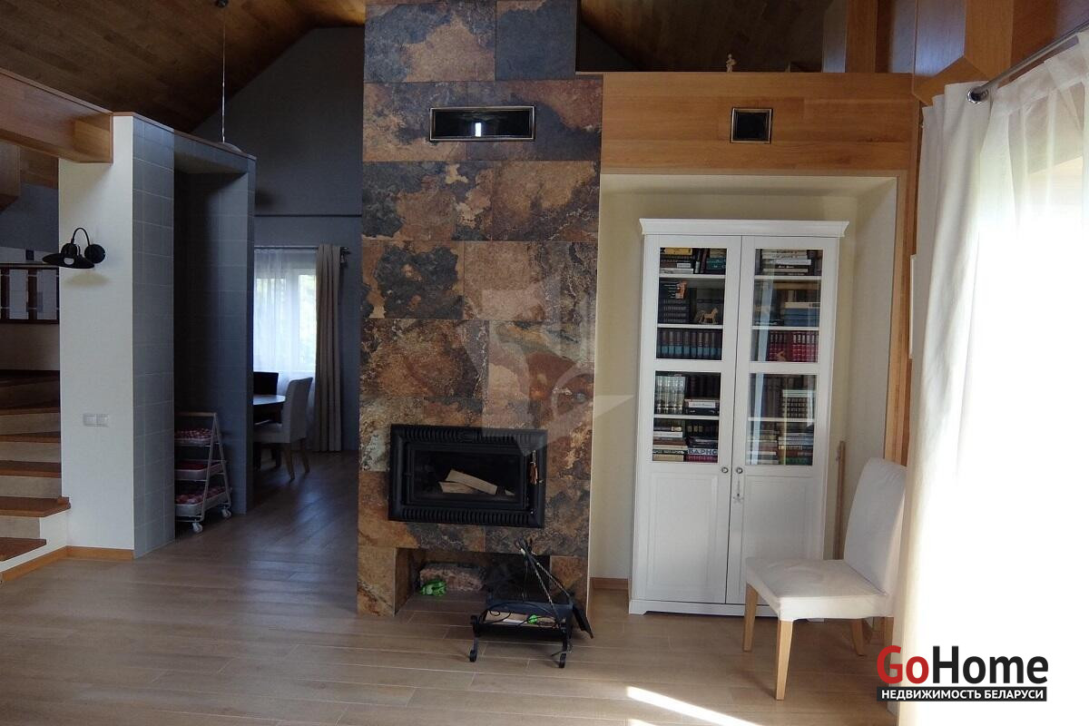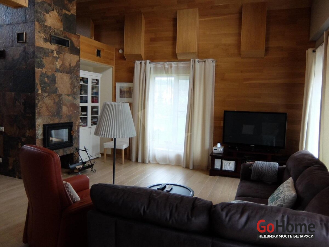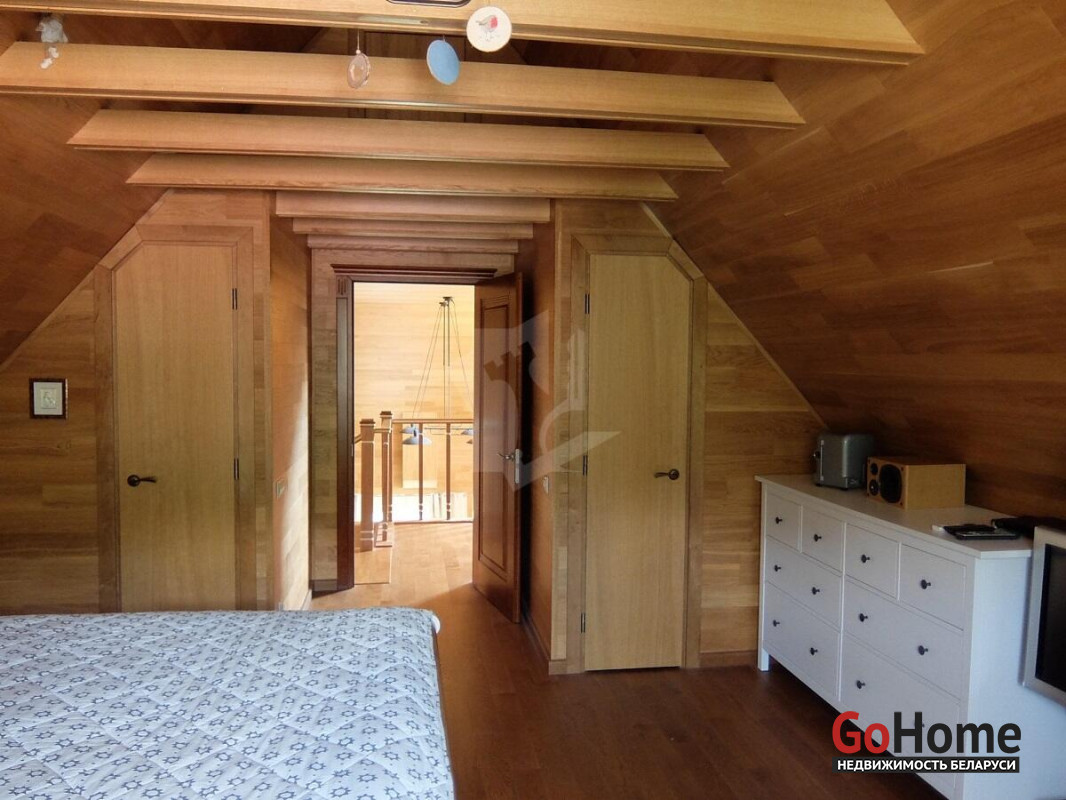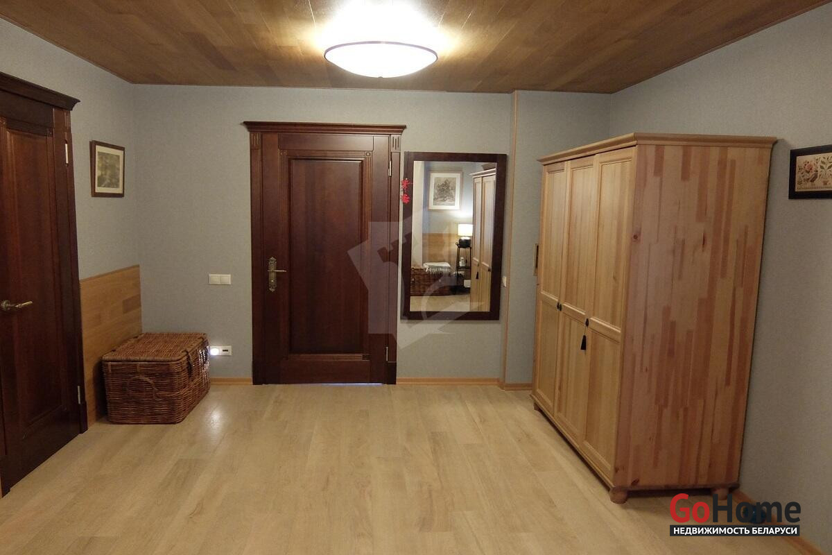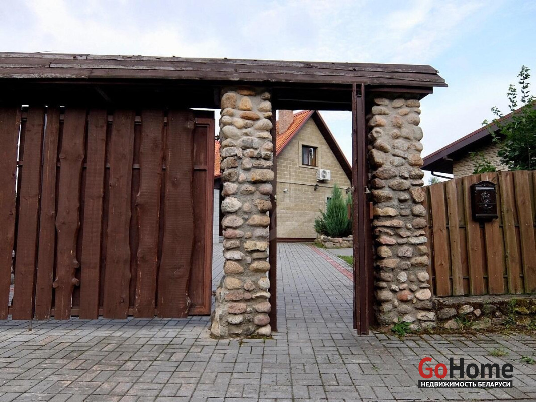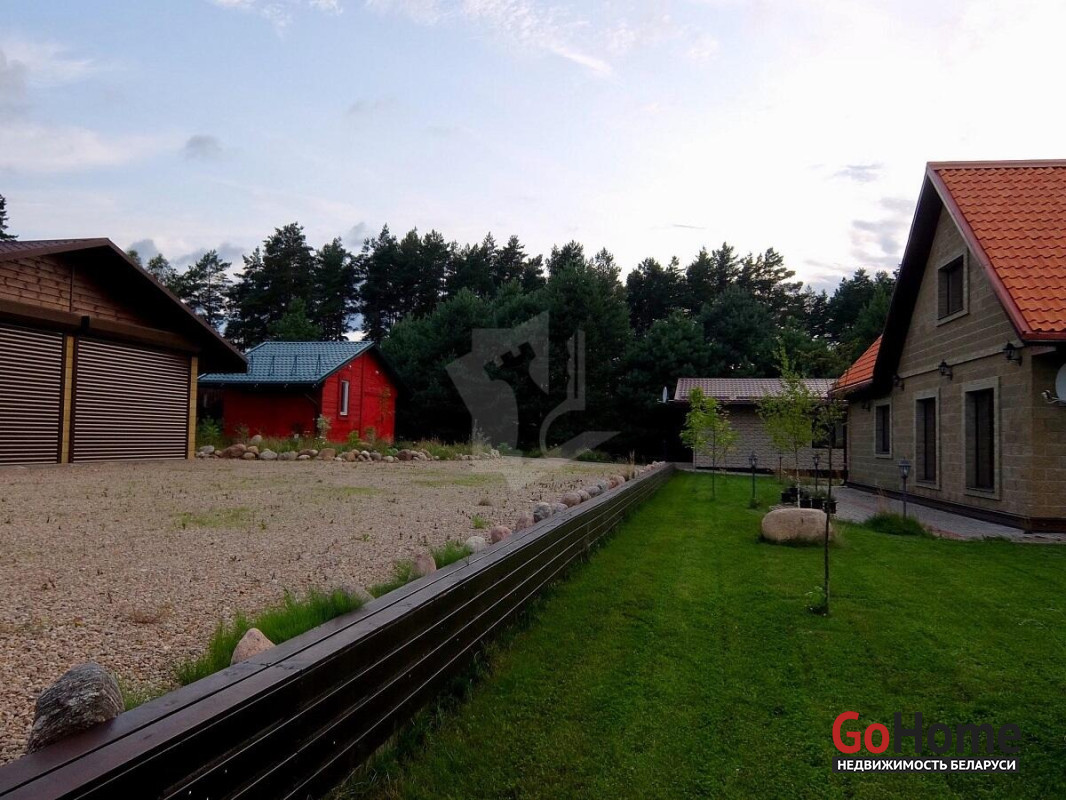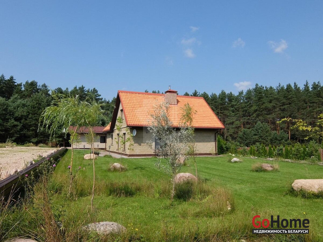 Дома построены на участке, окруженным сосновым бором, в санаторно- курортной зоне реки Ислочь. Район однородной коттеджной застройки. На участке 26 соток разместились: основной коттедж 122 м2,гостевой дом 45 м2, хозяйственная постройка для велосипедов,садовой техники и инвентаря, гараж на 2 автомобиля.