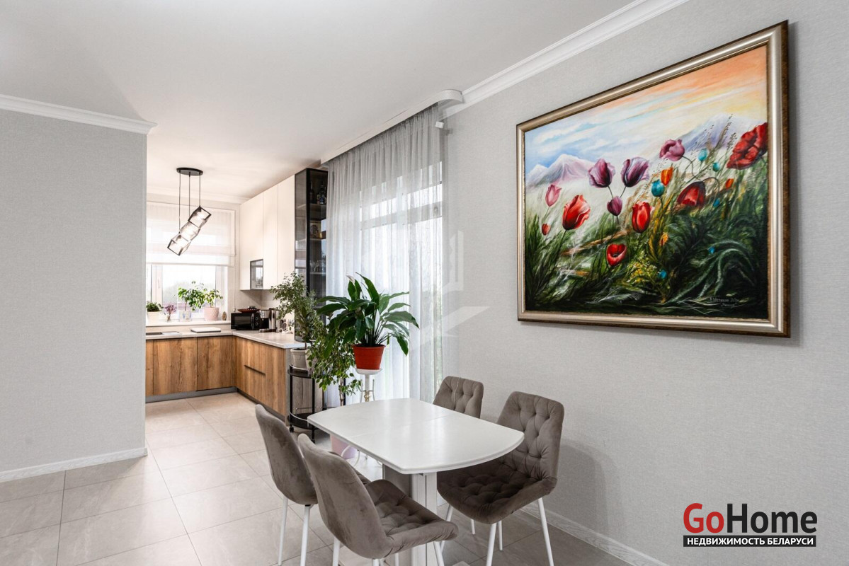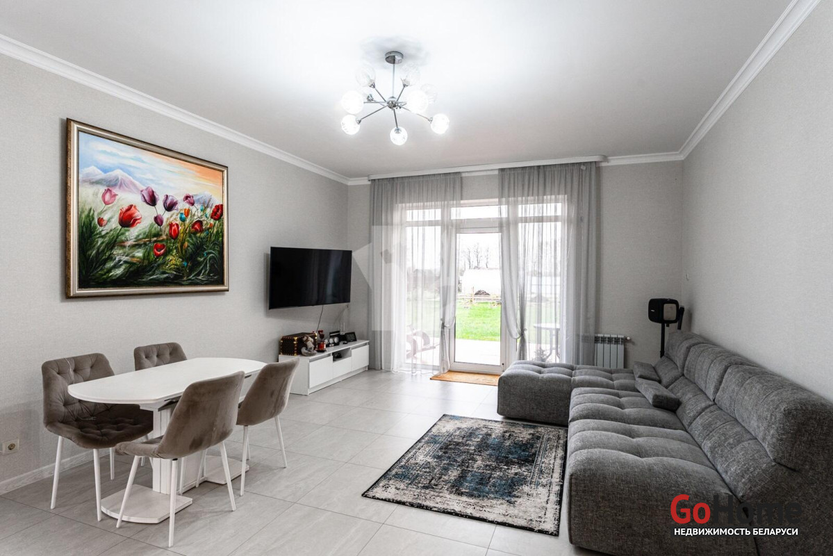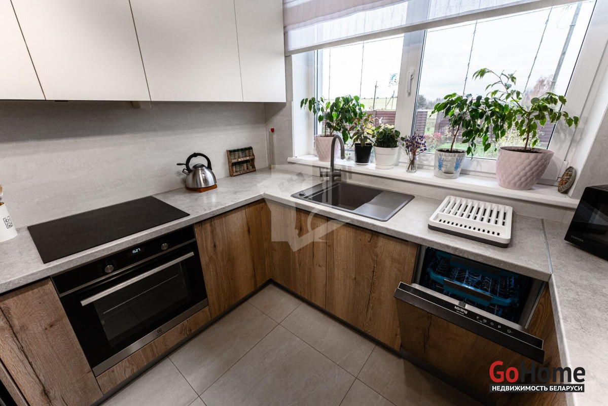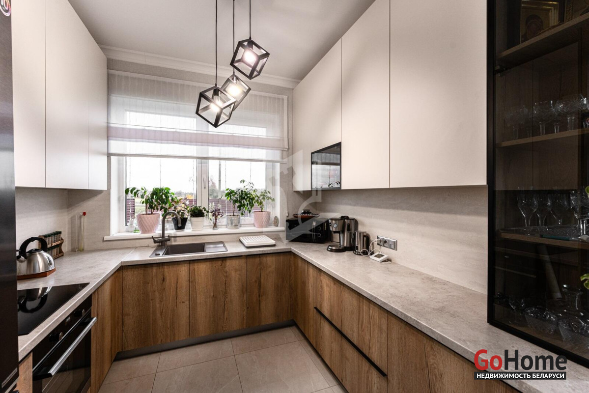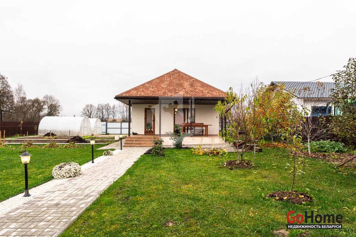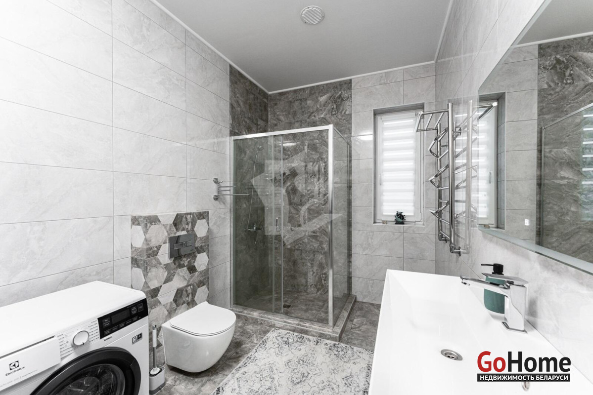 В живописном уголке Слуцкого направление, всего в 25 км от Минска, располагается современный дом, построенный в 2023 году, общей площадью 116,3 кв. м. Просторная жилая площадь составляет 80,9 кв. м, а кухня-гостиная площадью 36,9 кв. м становится центром семейных встреч и уютных вечеров. Интерьер дома оформлен в современном стиле, с акцентом на комфорт и удобство. Гардеробная и прихожая из качественного материалаов Egger создают гармоничный и стильный вход в дом. Спальни оборудованы кроватями и матрасами от известной марки Аскона, что обеспечивает отличный отдых. Модульный диван с возможностью разложения, а также телевизор LG с диагональю 55 дюймов, создают атмосферу уюта для вечерних просмотров. Кухня, выполненная из Egger, оснащена современными встроенными приборами: индукционной панелью, холодильником "Beco", духовым шкафом Electrolux и посудомоечной машиной. Дополняют функциональное пространство вытяжка Maunfeld, фильтр для воды с обратным осмосом и мойка "Teka". Кухонный стол с покрытием из искусственного камня раскладывается, что удобно для приема гостей. Отопление в доме обеспечивается газовым котлом Ariston с управлением по Wi-Fi, что позволяет поддерживать комфортную температуру в любое время года. Для удобства в уборке предусмотрены ручной пылесос Dreame и робот-пылесос Xiaomi, а стиральная машина Electrolux делает стирку легкой и быстрой. В ванной комнате установлено зеркало со встроенной подсветкой, теплые полы и продуманное освещение террас и входной группы создают атмосферу домашнего уюта. Незабываем и про баню )На участке расположена отдельно стоящая просторная баня размером 6х8,3 м, которая идеально вписывается в окружающую природу. Внутри имеется уютная гостевая комната и терраса, где можно насладиться свежим воздухом. Баня оснащена мощным чугунным котлом на дровах, что создает настоящую атмосферу русской парной. Также предусмотрены санузел и душ, обливное ведро и электрический теплый пол, что обеспечивает максимальный комфорт во время процедур. Так же расскажем про участка и хозяйственный блок Участок площадью 15 соток окружен ухоженным садом, где высажены разнообразные декоративные и плодовые растения. В саду растет множество цветов, включая 25 кустов роз, гортензии, магнолию, юкку и жасмин, создавая живописный ландшафт. Плодовые деревья, такие как груша, слива, черешня и семь яблонь, радуют урожаем, а ягодные кусты, включая малину, смородину и голубику, добавляют разнообразие. На участке также предусмотрены благоустроенные грядки и две теплицы, что делает его идеальным для любителей садоводства. Хозпостройка включает в себя погреб, выложенный из кирпича, как баня, и дровник, что обеспечивает удобное хранение запасов. Забор с откатными воротами и распашные ворота на заднем дворе обеспечивают безопасность и уединение, создавая идеальную атмосферу для жизни и отдыха в гармонии с природой. Каждый элемент этого дома и участка продуман до мелочей, создавая уникальное пространство для комфортной жизни и отдыха.