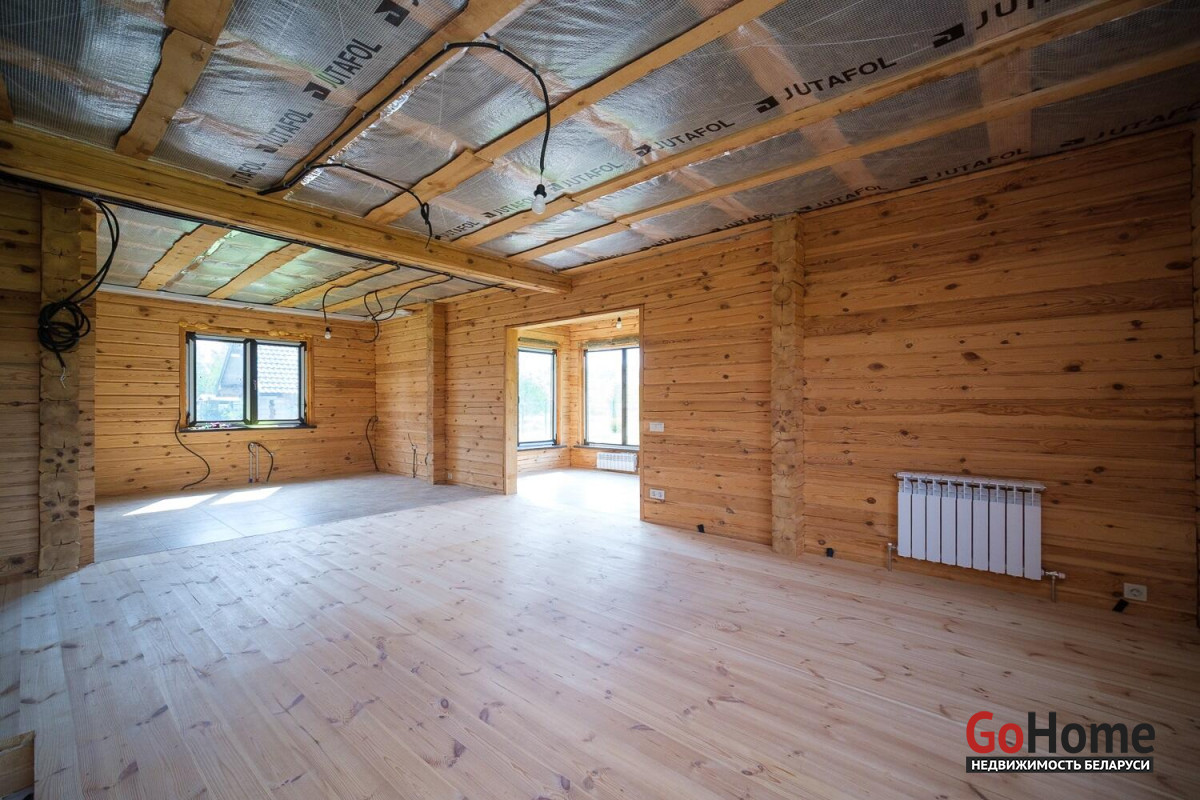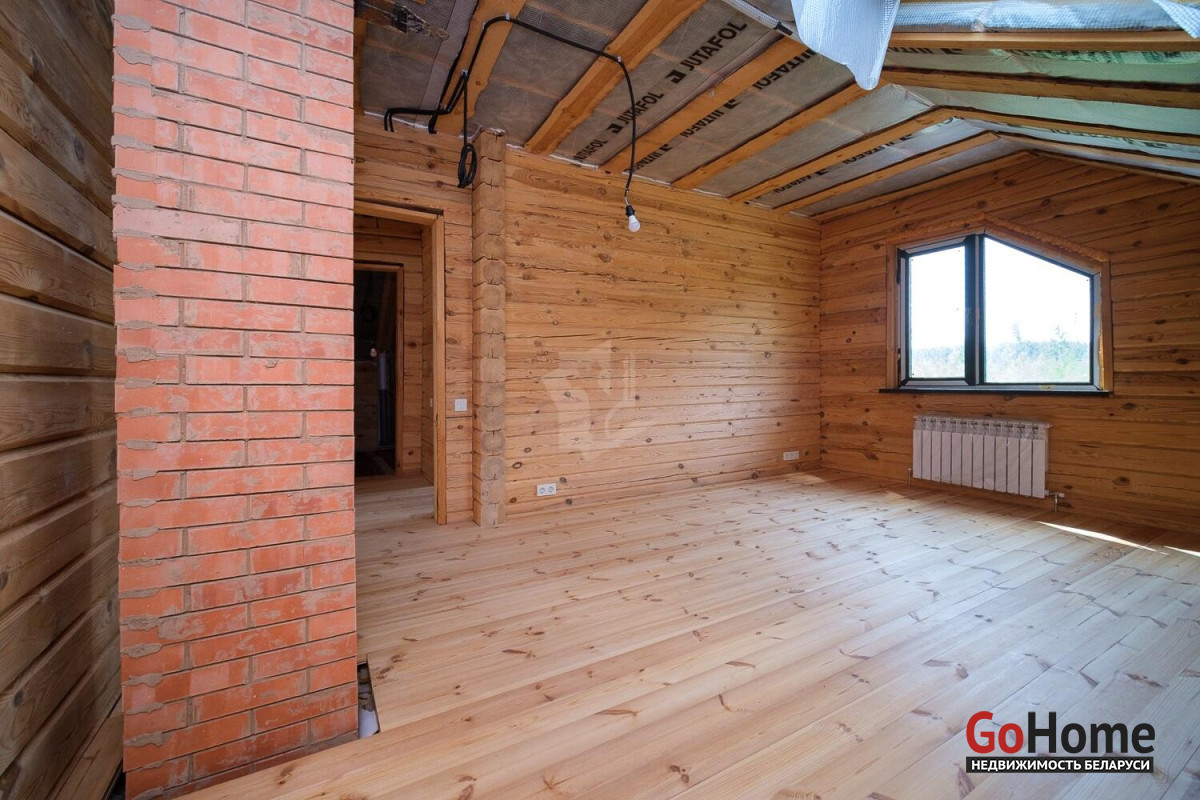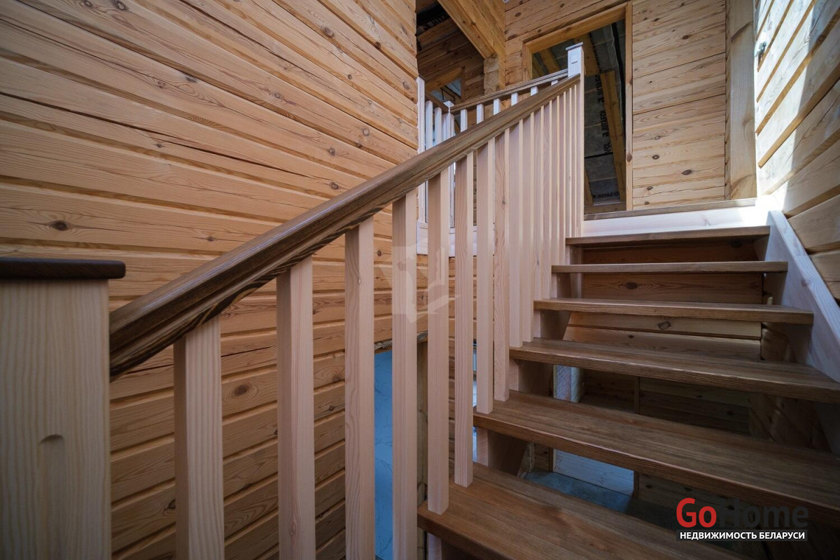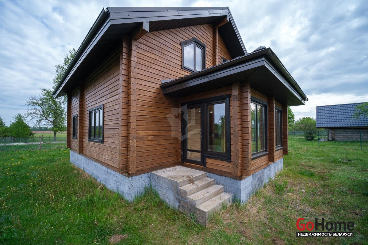 Продам красивый современный дом из бруса в д.Пестун (введен в эксплуатацию). Построен для постоянного проживания, может использоваться и как дача. Фундамент – свайно-ростверковый, высокий. Материал стен – профилированный брус. Стены отшлифованы с наружной и внутренней сторон, снаружи окрашены. Материал кровли – металлочерепица МП Трамонтана X Norman 0,5 мм, оцинковка, ветро-, пароизоляция, утепление 200 мм, качественные мансардные окна. Скважина -32 метра. Установлены фильтры грубой очистки, предусмотрена установка системы водоподготовки. Канализация – септик «Топаc-6».Электроснабжение - 220/380 вольт. Электропроводка – медь. Разведена по дому в металлорукавах в ПВХ оплетке. 3 электрощитка (в котельной, на 1м и 2м этажах).Отопление - предусмотрено несколько сценариев. Твердотопливный котел (установлен в отдельно стоящей котельной), электрокотел с возможностью дистанционного управления. Красивая печь с камином и встроенной духовкой. На первом этаже под керамогранитом водяной теплый пол с регулируемыми гребенками и зонированием. Теплые полы выполнены цельными трубами из сшитого полиэтилена на утеплителе толщиной 150 мм из эструдированного полистирола с отражающим слоем. На обоих этажах установлены радиаторы.Покрытие полов в гостиной и жилых комнатах – сосновая половая доска класса люкс 32-36 мм. Горячее водоснабжение – водогрейный бойлер косвенного нагрева 300 литров с подключаемым тэном. Удобная планировка. Огромная кухня-гостиная 40 м2, 4 большие светлые комнаты, санузлы на каждом этаже, гардеробная, подсобные помещения. Высота потолков 2,61м. Большая, 11 м2, с панорамным остеклением, терраса с видом на лес, и выходом во внутренний двор. Удобная лестница на 2й этаж.Санузел на 1м этаже: совмещенный, отделан плиткой. Имеются все необходимые выводы (полотенцесушитель, смесители, гигиенический душ, розетки, подсветка зеркала, принудительная вытяжка, унитаз и т.д.)Дом на завершающей стадии внутренней отделки.Участок 17,35 сот. в частной собственности, ровный, огорожен. Находится в 45 минутах езды от Минска по скоростной трассе М5 на Бобруйск, и 3 км по красивой лесной дороге до деревни.В зимнее время регулярно чистится.Есть возможность увеличить размеры участка и усадьбы путем приобретения соседнего участка-за отдельную стоимость. Участок располагается на спокойной улице небольшой лесной деревни. Сосновый лес-сразу за забором, в сезон много ягод и грибов. В лесу поблизости есть озеро. До Свислочи чуть больше километра-15 минут пешком -любителям рыбалки и отдыха на воде.5 км -8 минут езды до развитого аг.Пуховичи со школой, садом-яслями, медцентром, почтой, баней, магазинами и прочей инфраструктурой. В деревню 2 раза в неделю приезжает автолавка и работает доставка Евроопта.Чистый воздух, красивые пейзажи-чудесное место в окружении природы- для людей любого возраста.