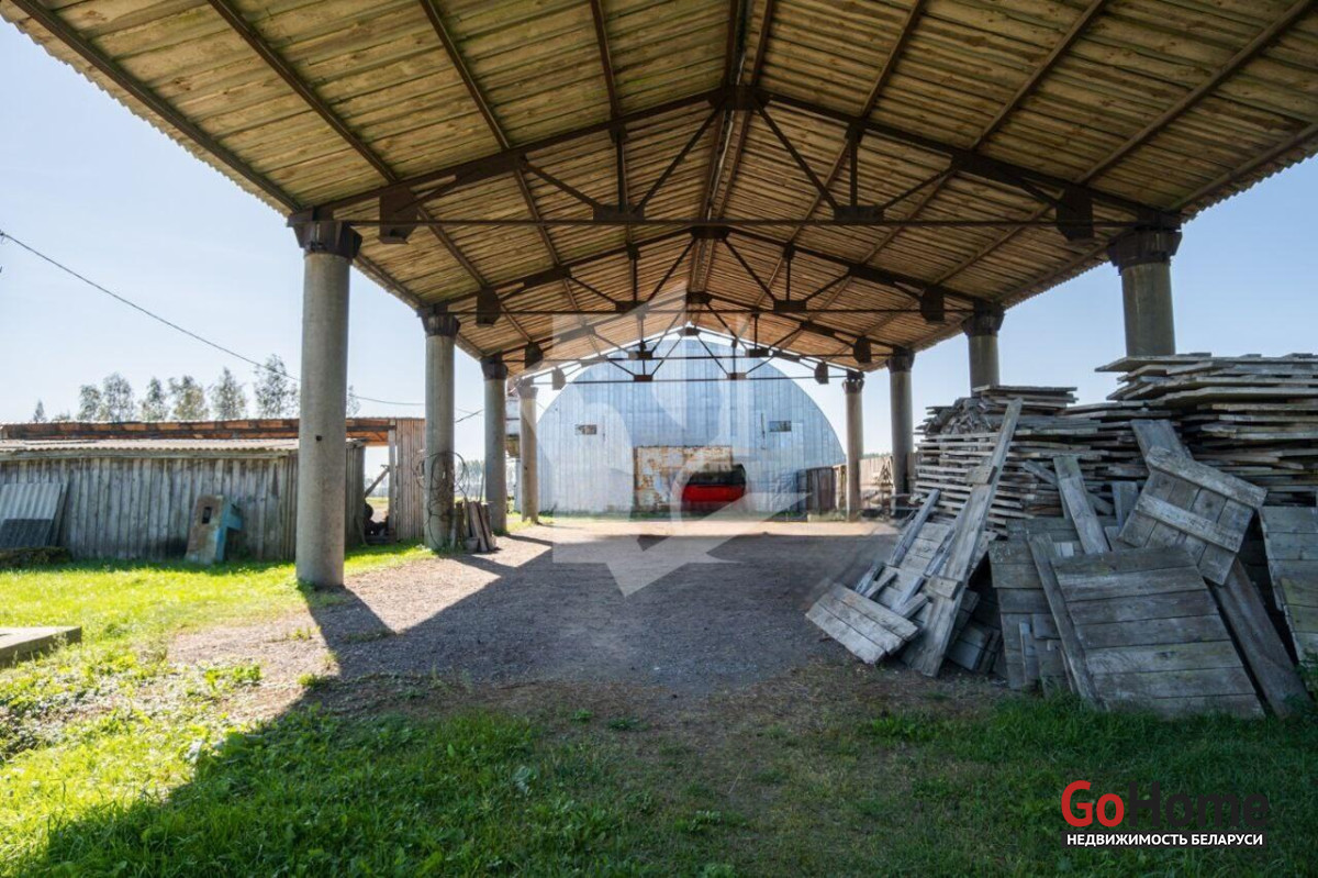 На территории 5 гектаров расположен большой ангар (15×34 м, высота 7,5 м), ранее использовавшийся как деревообрабатывающий цех. Это готовая база для вашего дела. Большой дом из 6 комнат около 200кв.м. В доме могут проживать работники, а рядом есть высокий навес на 8 колоннах (высота 7.5 м), который отлично подходит для хранения техники, стройматериалов или как зона для сушки древесины.