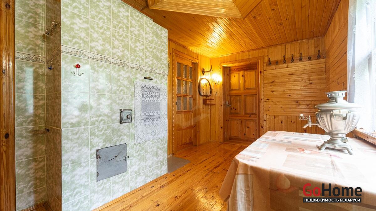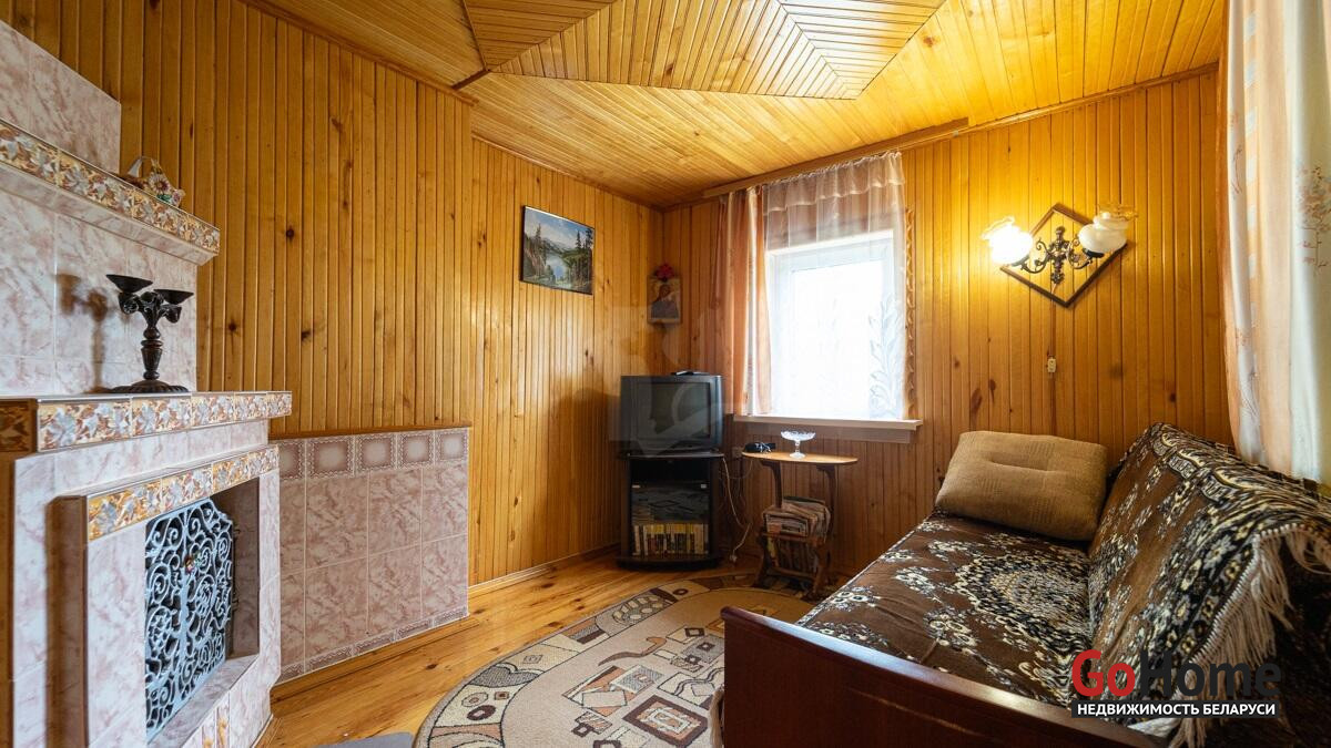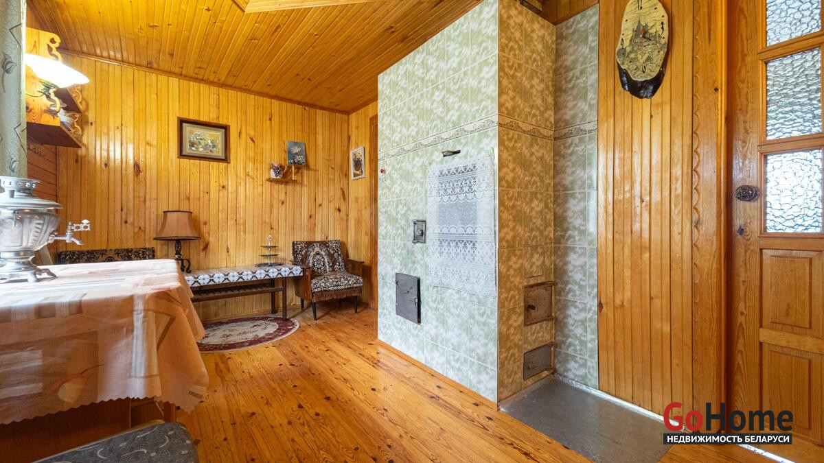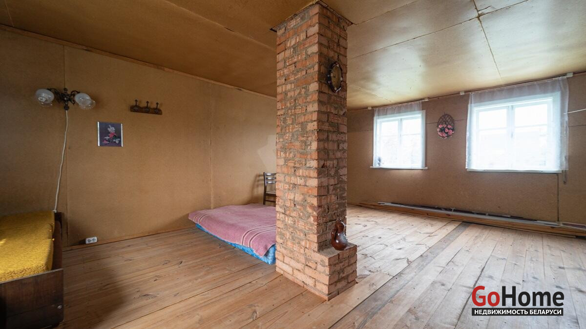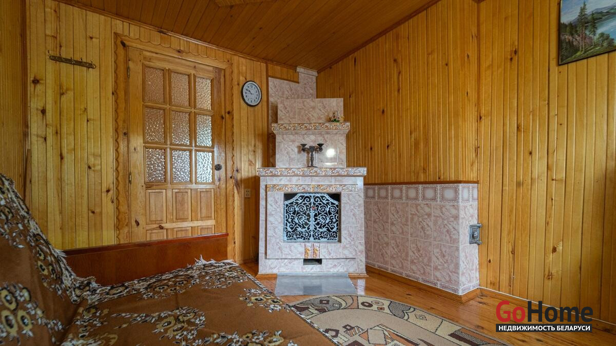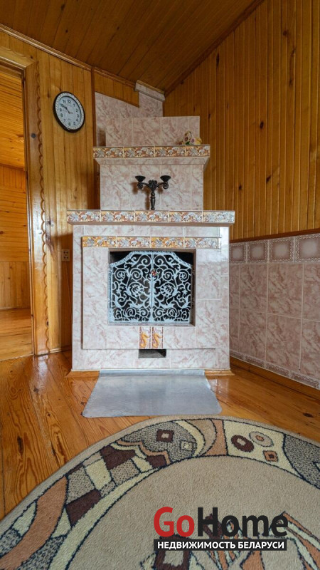 Дом 2005 года постройки, сложен из бруса и общит пластиком. На первом этаже расположены кухня, столовая, две жилые комнаты и санузел (канализация местная). На втором этаже одна просторная комната, которую можно при желании разделить на несколько спален. Грамотная планировка позволит с комфортом разместиться большой семье. Отопление печное. Печь с лежанкой и камином.