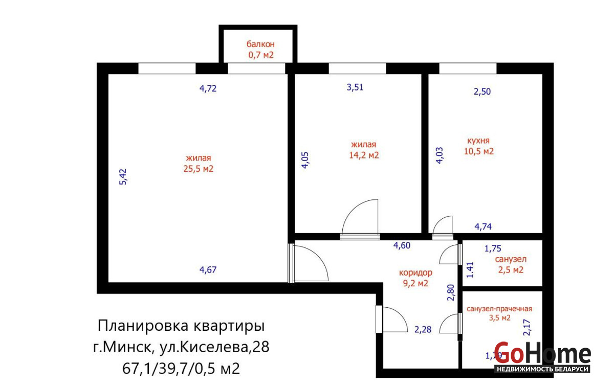 Общая площадь квартиры по СНБ- 67.1 кв. м., жилая площадь - 39.7 кв.м., застройка 1890 г.