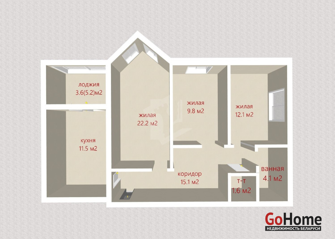 - Квартира расположена на 3-ем этаже 3-х этажного жилого дома . Окна выходят на 2 стороны дома, что обеспечивает хороший обзор и увеличивает количество естественного освещения.