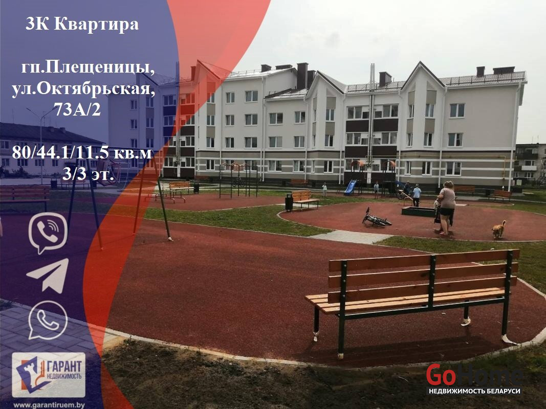 Продаётся трехкомнатная квартира в гп. Плещеницы 52.2 км от МКАД) без отделки.
