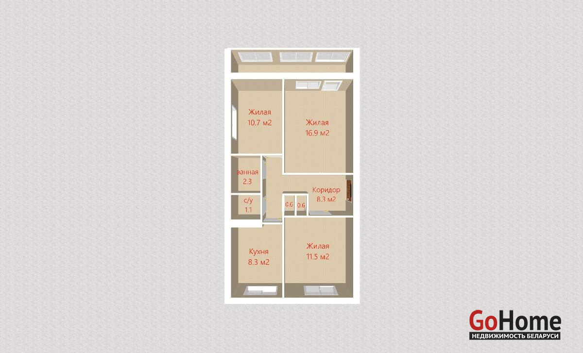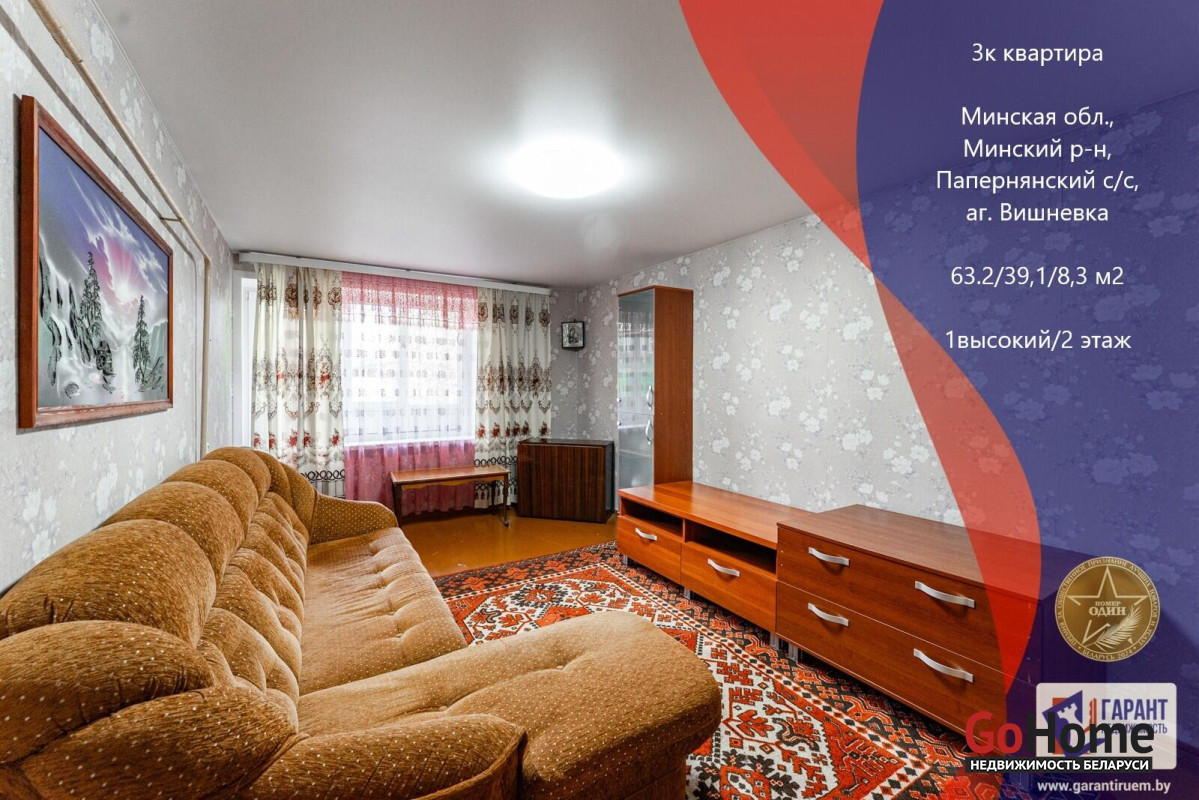 Квартира расположена на 1-ом этаже 2-этажного кирпичного дома 1980 года. Три изолированные комнаты 16,9м., 11,5м. и 10,7м., кухня 8,3м., раздельный санузел, большая застекленная лоджия. Есть подвал.