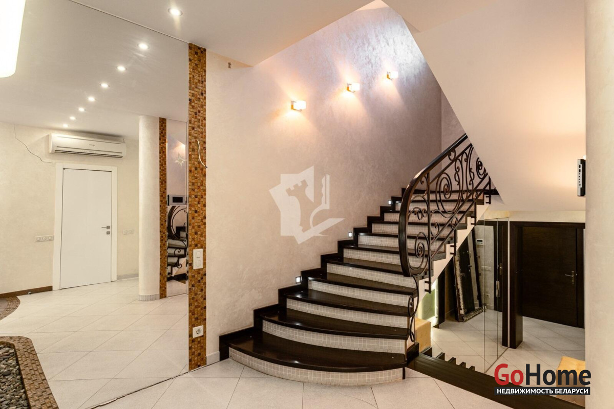 Между этажами установлены лестницы с мягким деревянным покрытием и с коваными перилами. На стены нанесена декоративная штукатурка с высокодетализированной росписью.