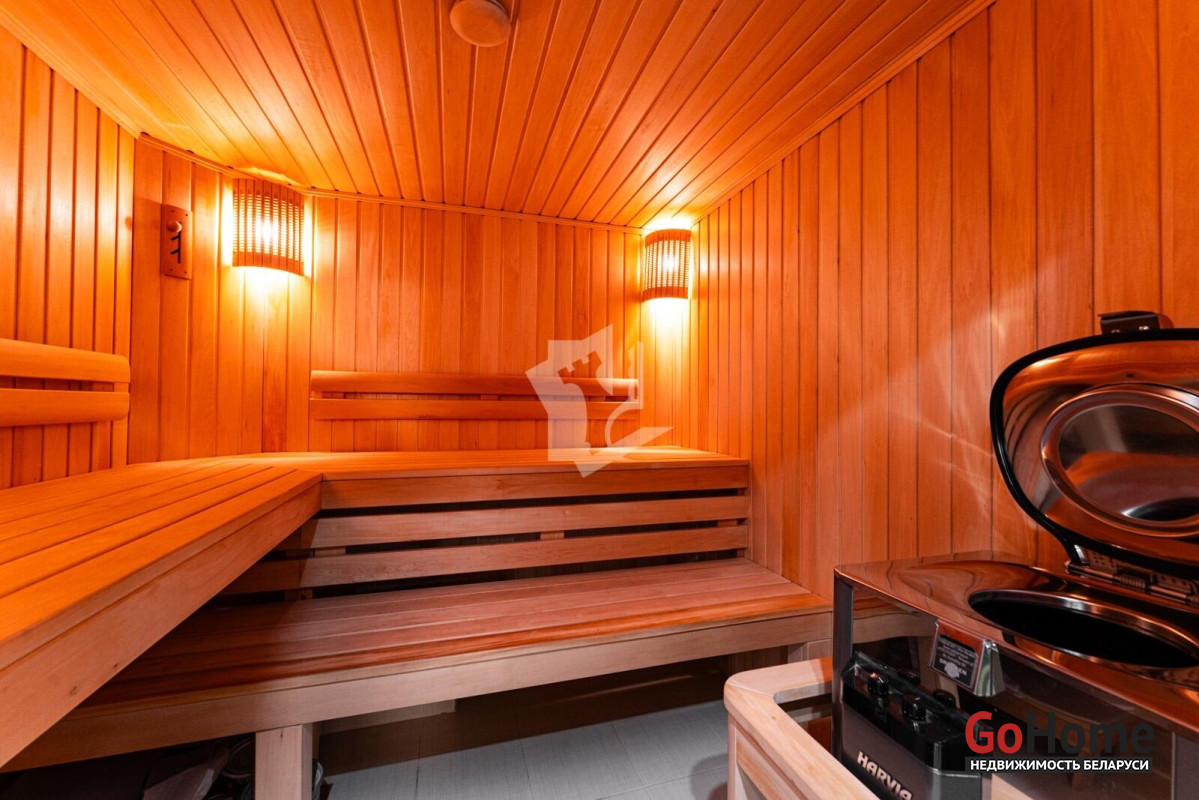- липовая сауна с высокотехнологической печкой Harvia с пультом управления, которая может работать как в режиме сухой финской сауны, так и в качестве влажной русской бани