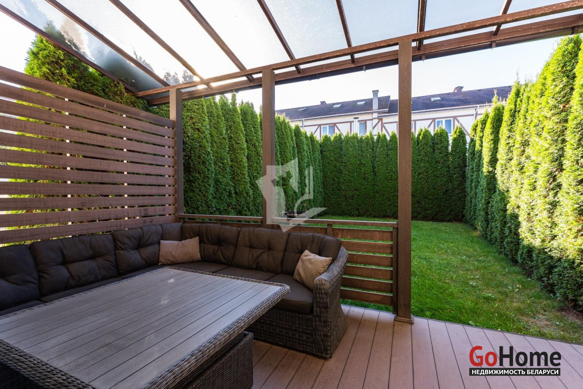 - к террасе прилегает ухоженный участок 2,17 сотки, на котором по периметру растут туи с автополивом. Туи образуют естественный барьер, который обеспечивает уединение и снижают уровень шума