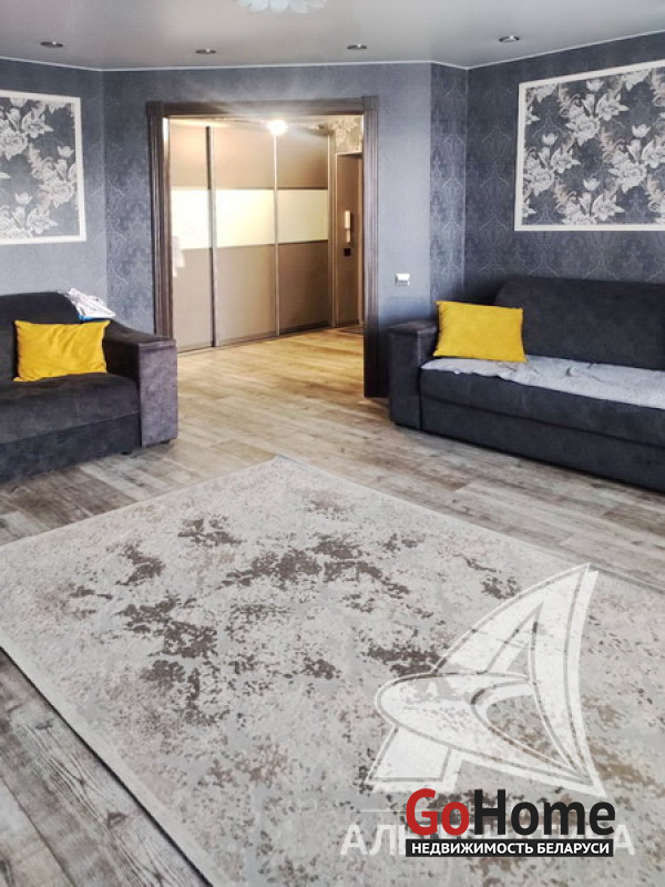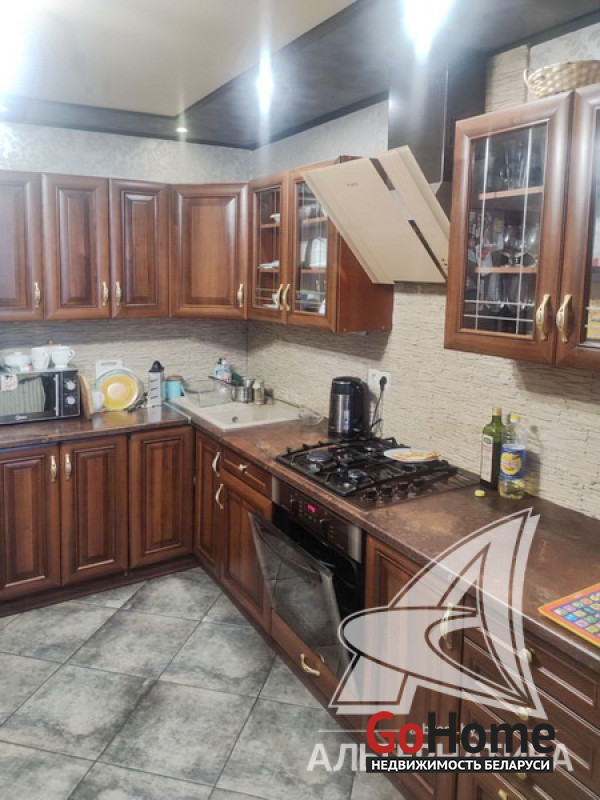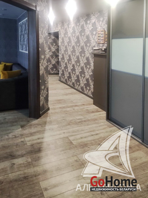 3-комнатная квартира, г. Брест, ул. Сальникова, 2014 г.п., 5 / 5 кирпич, 79,4 / 77,3 / 45,0 / 10,4, санузел раздельный, лоджия застеклена, подвал, стеклопакеты, входная дверь металлическая, натяжные потолки (2,52 м), полы - плитка и ламинат, стены - отделка камнем (в кухне) и оклеены обоями, в санузле современная плитка, душевая кабина, домофон. Кухонный гарнитур, мебель по договоренности. Квартира с хорошим ремонтом. Лот - 221976