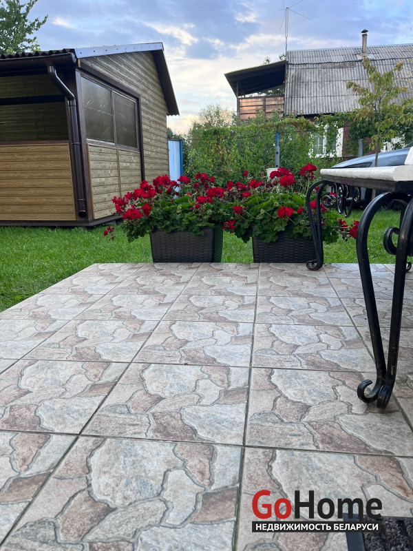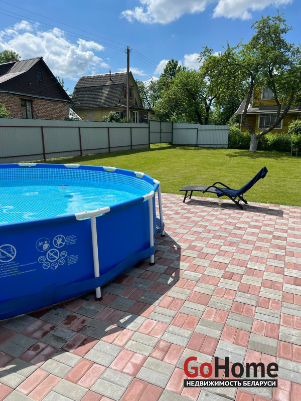 Имеется сезонный каркасный бассейн на 9 т. Воды (устанавливается на участке из тротуарной плитки). Отдельно стоящая беседка.