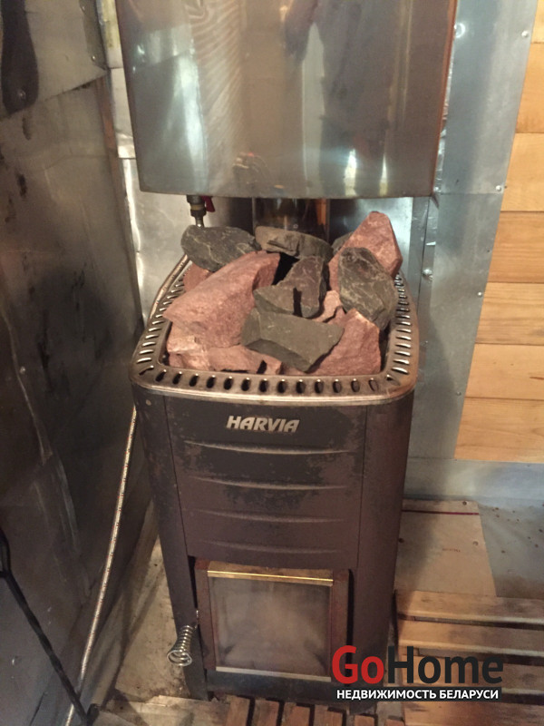 Имеется БАНЯ с печью HARVIA. В хоз.блоке установлена стиральная машина.