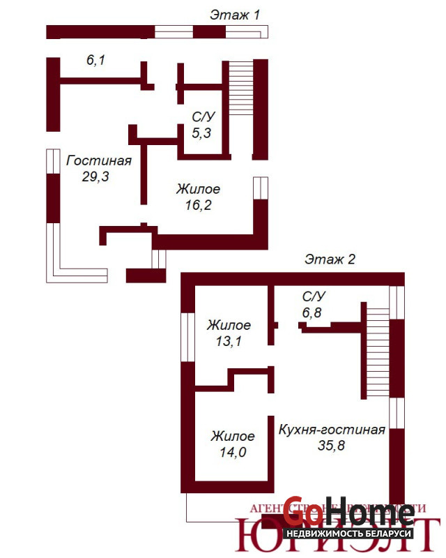 Планировка: 3 изолированные спальни, кухня-гостиная, гостиная, 2 санузла, топочная, кладовая.