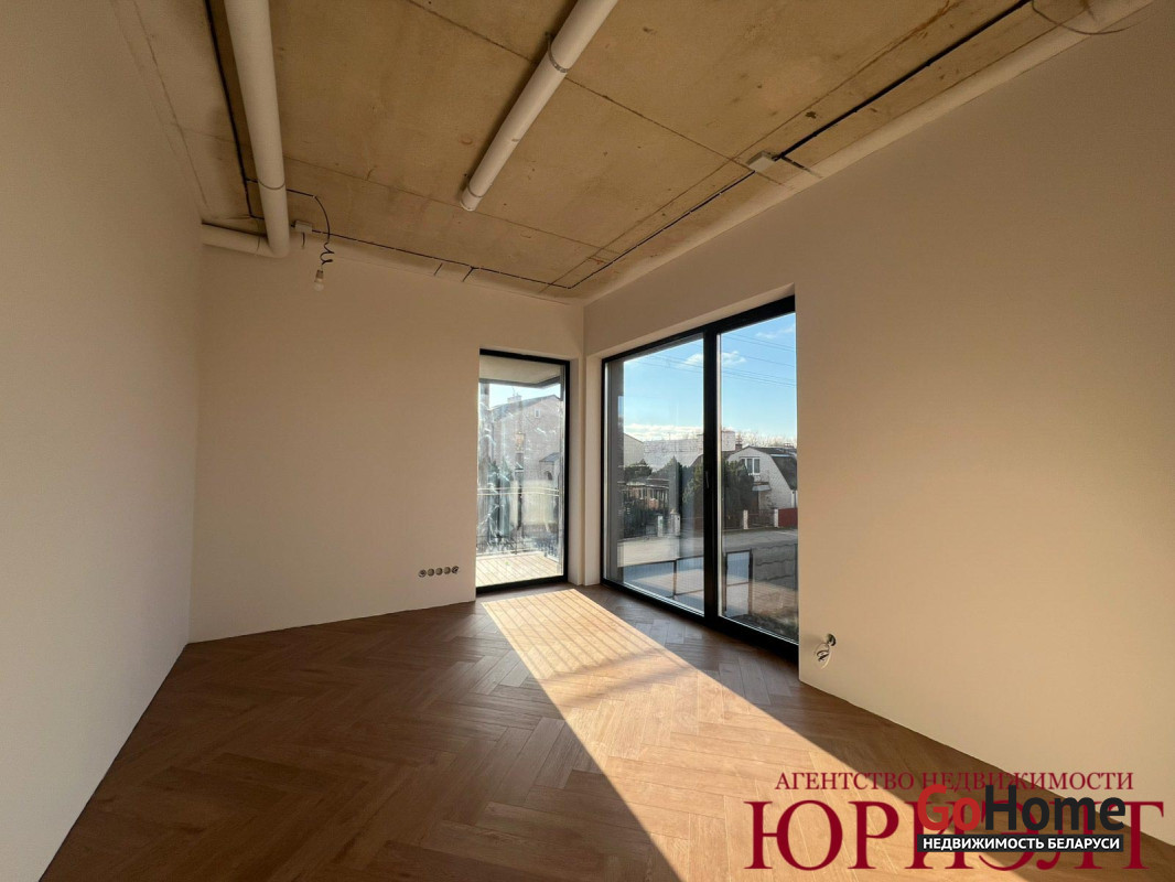 Внутренняя отделка выполнена согласно дизайн-проекту: напольное покрытие — кварц-винил, стены окрашены, межкомнатные двери скрытого монтажа.