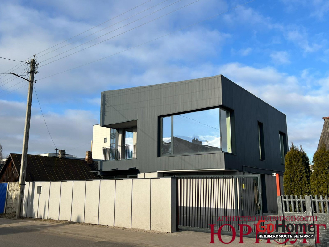 Фасад дома: второй этаж — металлический, вентилируемый; первый этаж — декоративная штукатурка.
