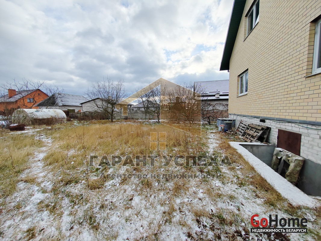 Помимо дома на участке залит фундамент под хозпостройку и гараж, для любителей земледелия имеется теплица. На территории высажены многолетние плодовые деревья и кустарники, а перед домом декоративные хвойные растения.