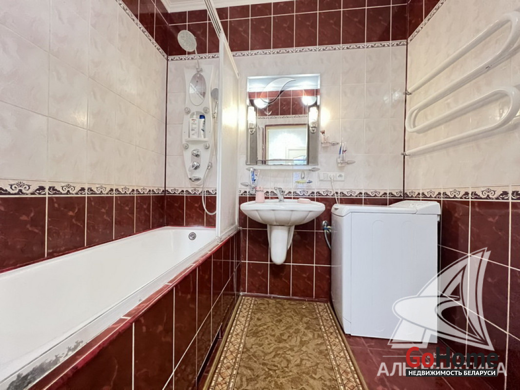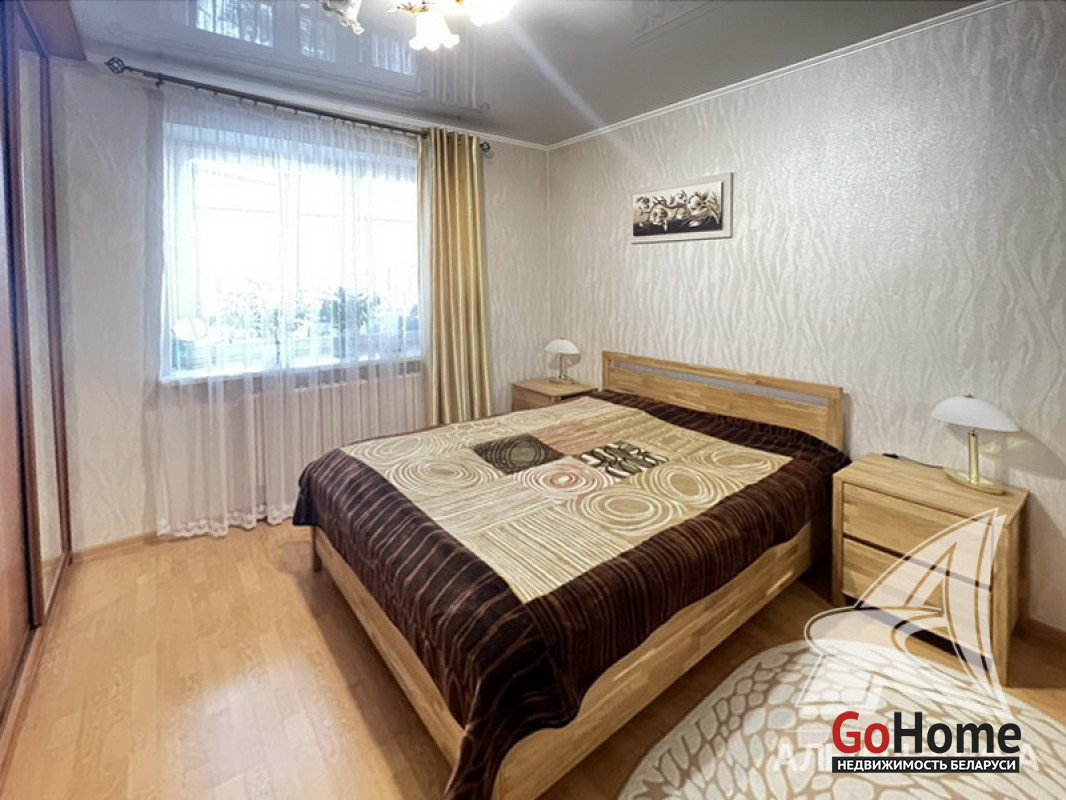 3-комнатная квартира, г. Брест, ул. Жукова, 2002 г.п., 5 / 5 кирпич, 94,5 / 90,6 / 54,4 / 14,2, санузел раздельный, две лоджии застеклены, подвал, деревянные стеклопакеты, межкомнатные двери - МДФ, входная дверь металлическая, потолки (2,78 м) комбинированные, с разноплановой системой освещения - снежка, из гипсокартона и натяжной (сатин, глянец), полы - ламинат и плитка, есть подогрев пола (в кухне, в ванной комнате), на стенах декоративная окраска (моющаяся) и обои, в санузле современная плитка, установлен бойлер, подогрев пола, кондиционер, установлены фильтры очистки воды, домофон. Кухонный гарнитур, варочная поверхность, духовой шкаф (Electrolux), вытяжка, посудомоечная машина (Bosch), корпусная мебель (в детской), шкаф-купе (в коридоре), два шкафа (в спальне). Квартира с хорошим ремонтом. Квартира расположена на две стороны. На площадке имеется закрытое место для колясок и велосипедов. Чистый подъезд. Произведен ремонт крыши дома. Во дворе парковка для автомобилей. Дом расположен в глубине двора. Лот - 260002