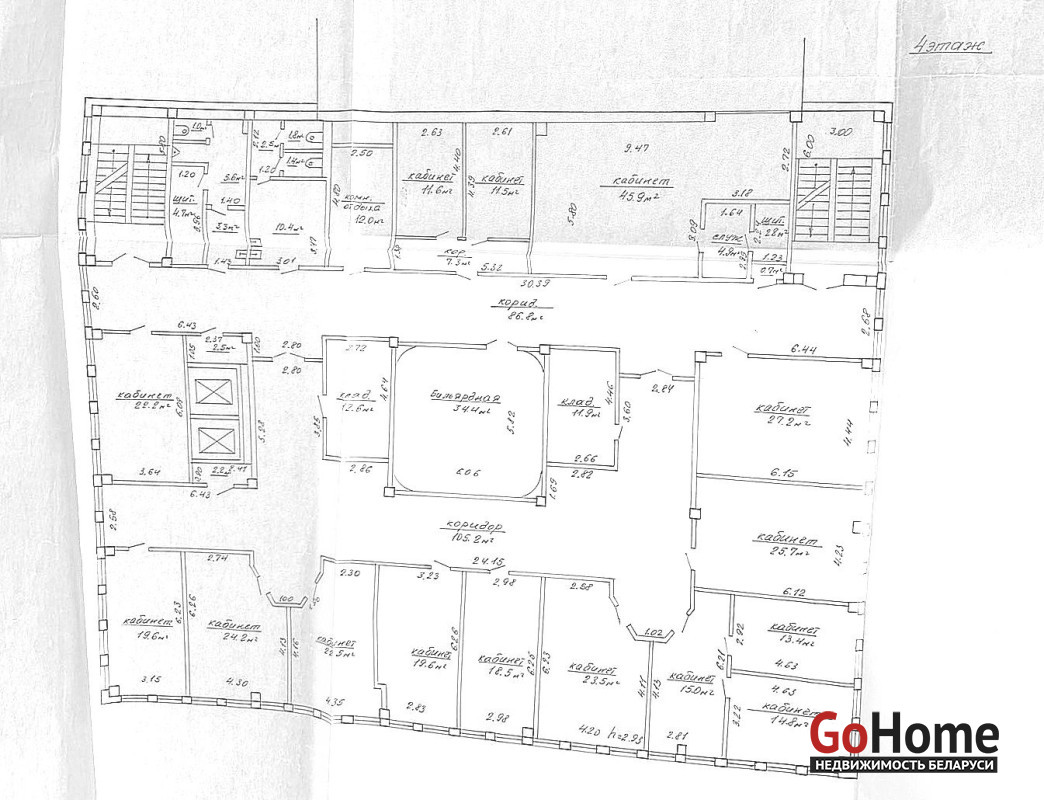 Помещение находится на 4 этаже и включает две офисные комнаты (19.6 кв м и 15.2 кв.м). В самом помещении воды нет, только на коридоре в санузле. Низкие коммунальные услуги. Коммуникации: