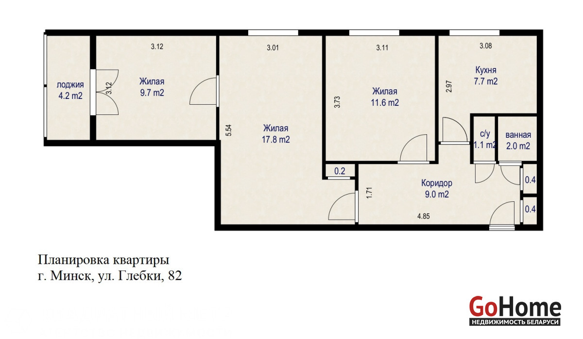 В квартире сделан аккуратный ремонт: на полу – ламинат, в санузле – керамическая плитка; установлены межкомнатные двери; входная дверь – металлическая.
