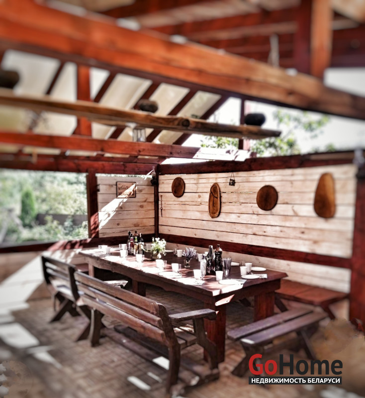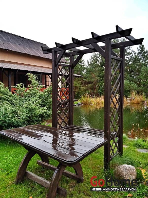 На территории усадьбы находятся два дома (гостевой и хозяйский ), большая беседка с огромным ,,семейным,, столом, зоной отдыха, зоной барбекю и помпейской печью, большие деревянные качели, закрытый детский домик с игрушками , детский комплекс с горкой и мостик над озером.