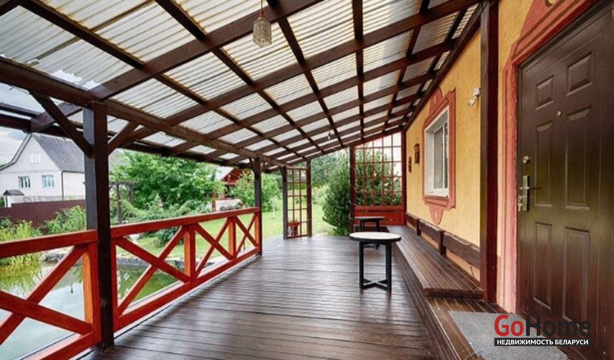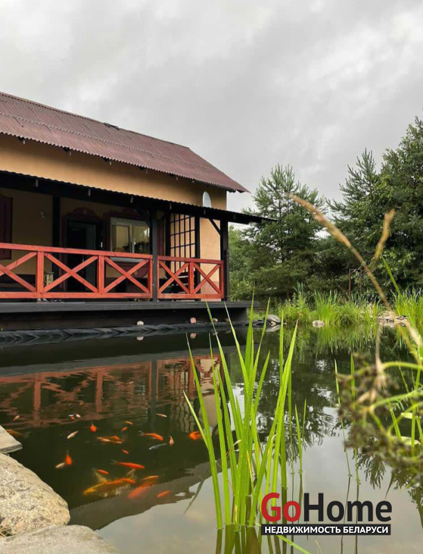 У дома большая терраса и прямо у террасы водоем с разноцветными карпами кои, пригодный для купания.