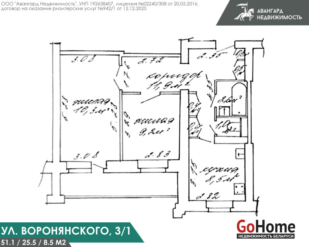 Квартира, общей площадью 51,1 кв.м., расположена на 7 этаже из 9, имеет удачную планировку: две жилые комнаты 16,3 и 9,2 кв.м., отдельную кухню 8,5 кв.м., и раздельный сан/узел. Высота потолков 2,54 м., дом 1993 года постройки. Несомненным преимуществом квартиры является высокий этаж и наличие просторного застекленного балкона 3,6 кв.м. На полу в жилых комнатах паркет, на окнах установлены стеклопакеты.