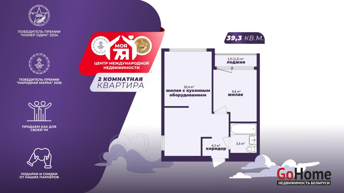 2-комнатная квартира 39,3 кв.м., Минск Мир
