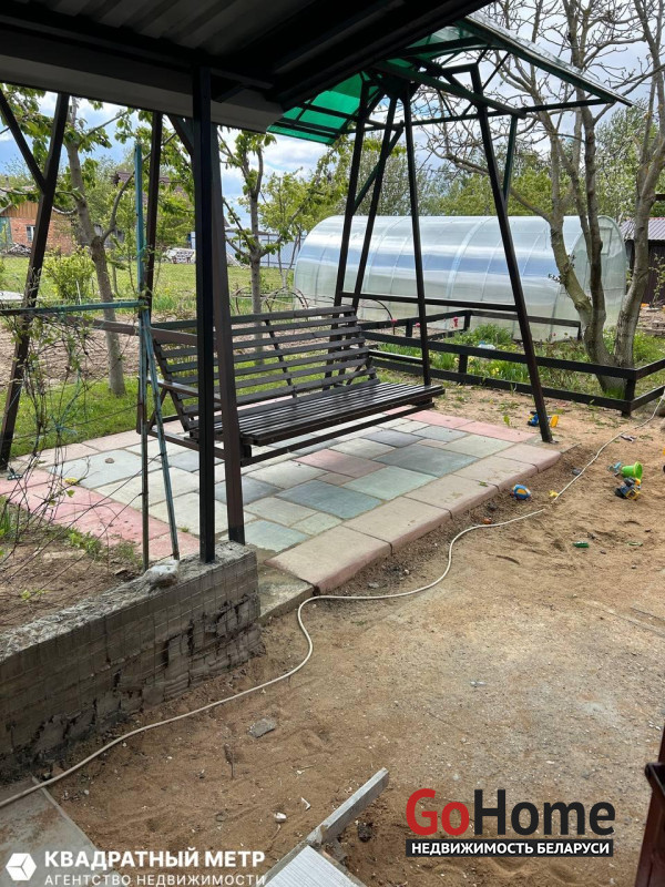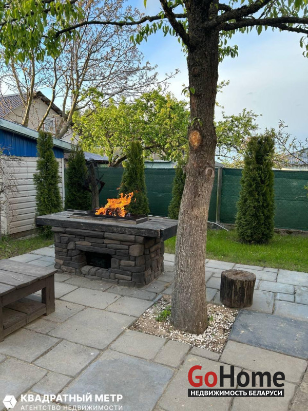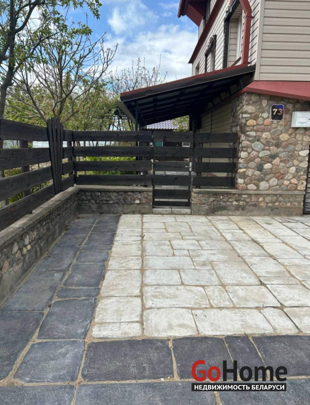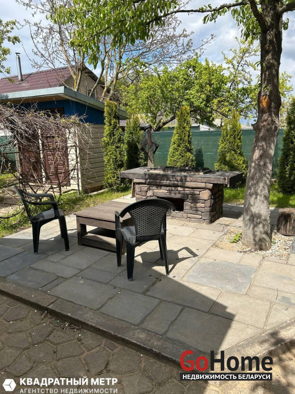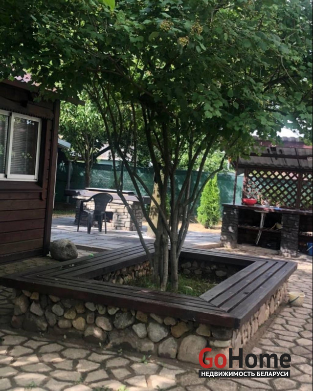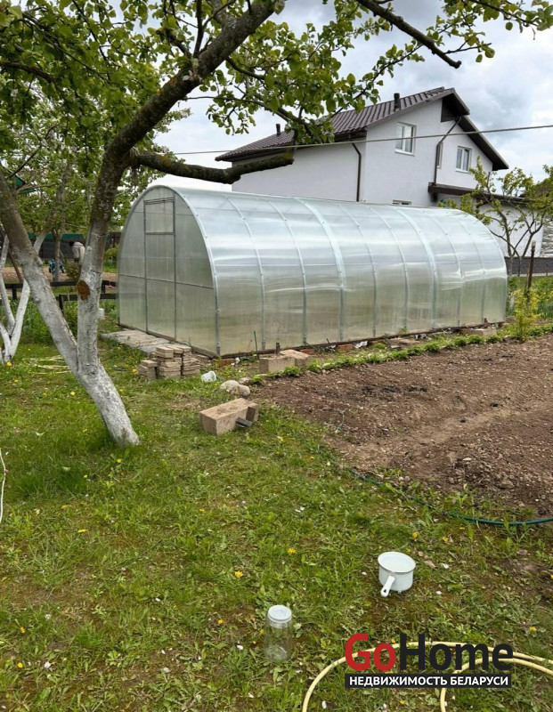 - Ухоженная и облагороженная территория: теплица, высокие грядки, растут плодоносные и декоративные деревья, кустарники, аккуратно вымощена тротуарная плитка.