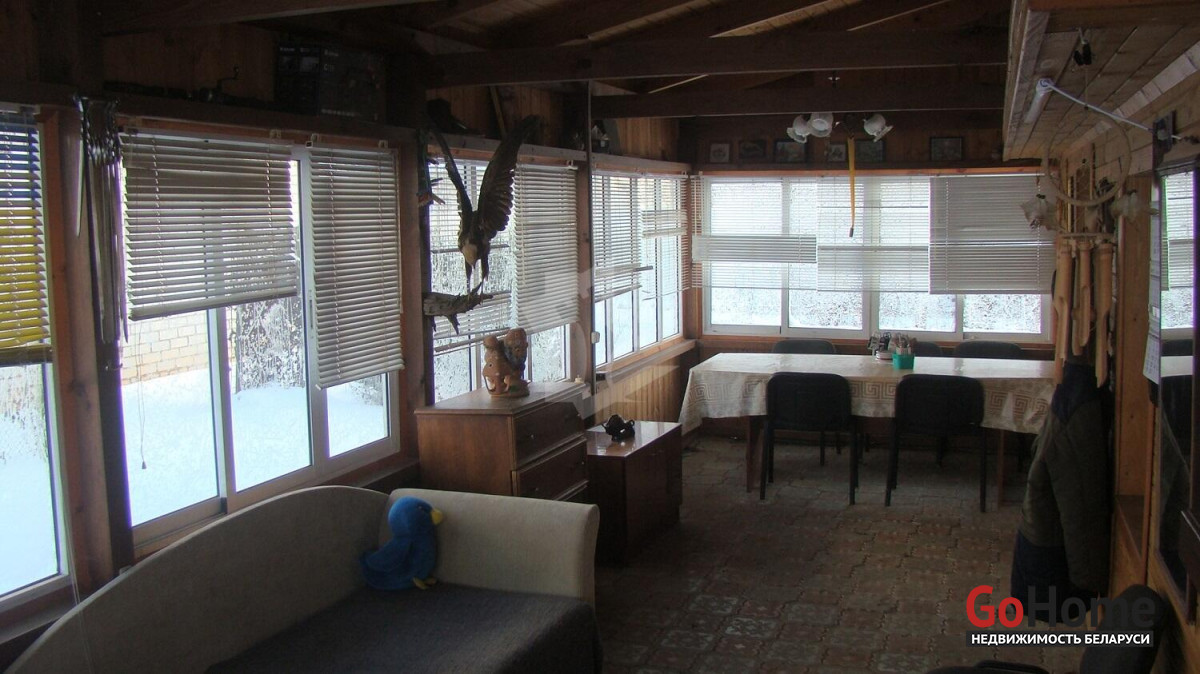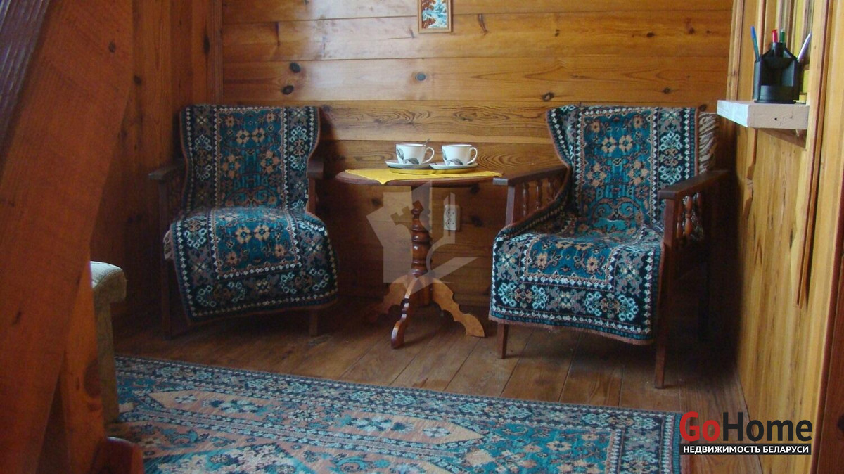 Внутри обшита вагонкой, выполнено в охотничьем стиле. Участок огорожен, ровный есть сезонная вода, на участке свой колодец. В домик приходит 380В и 220В есть возможность сделать отопление на электричестве, пока оно печное в двух домиках. Отдельно стоячая баня, есть сарай для инвентаря, беседка. На территории сад растут яблони, виноград, своя теплица.