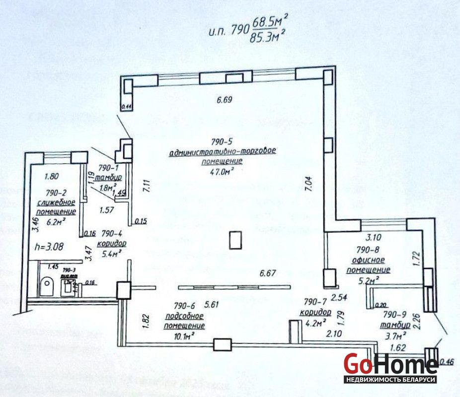 - Простор и комфорт: высота потолков — 3,08 м, площадь помещения — 85,3 м2, первый этаж.