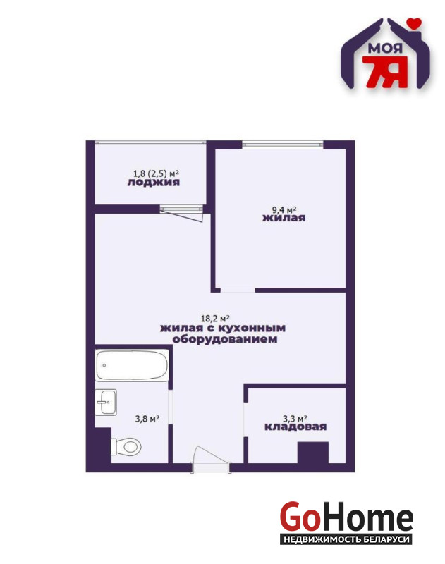 -Площадь 36,5 м2 использована максимально эффективно: жилое пространство 34,8 м2 позволяет организовать полноценную зону отдыха и уединённое рабочее место.