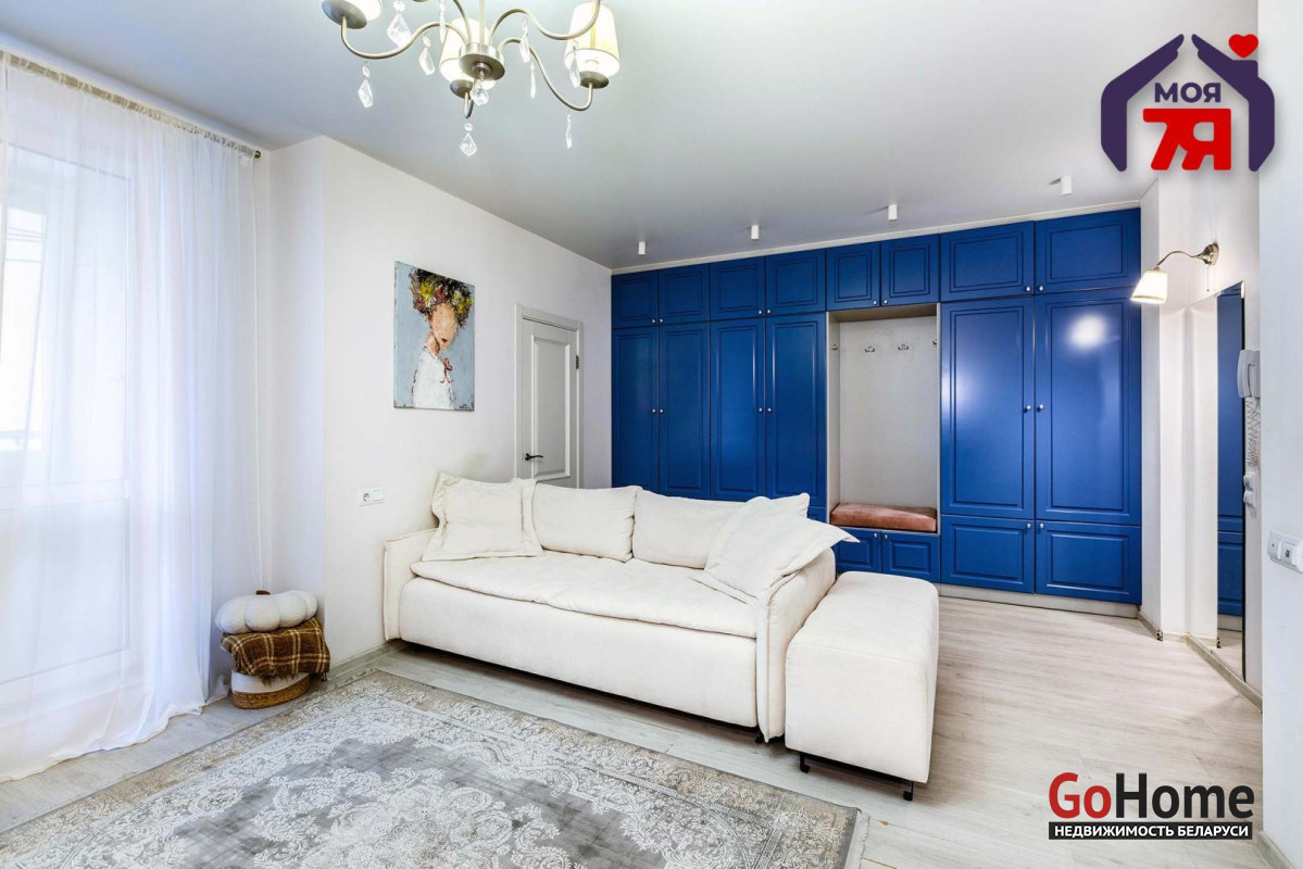 - Общая площадь квартиры по СНБ 48,6 кв.м, жилая площадь 29,7 кв.м, площадь кухни 10,4 кв.м. Планировка практичная, площади распределены рационально. - В квартире выполнен отличный ремонт, объект не требует дополнительных вложений. Продажа осуществляется с мебелью и бытовой техникой, включая посудомоечную и стиральную машину. В комнате установлен встроенный шкаф из натуральных материалов. На полу уложен ламинат. Санузел совмещён и отделан плиткой. Установлен кондиционер.- Окна квартиры выходят во двор, что снижает уровень уличного шума. Имеется застеклённая лоджия, которую можно использовать для отдыха или хозяйственных нужд.- Квартира расположена на 9 этаже 14-этажного кирпичного дома 2014 года постройки. Кирпичные стены обеспечивают хорошую тепло- и шумоизоляцию. В доме установлены финские лифты Kone, предусмотрены выходы на две стороны и подземный паркинг.- На придомовой территории оборудована современная детская площадка, предусмотрены выходы на две стороны здания. Район благоустроен, застроен современными жилыми домами, инфраструктура развита.- В шаговой доступности находятся магазины, детские сады и школы, пункты выдачи товаров, банки, аптеки, кафе и рестораны. Остановка общественного транспорта расположена в одной минуте ходьбы от дома.