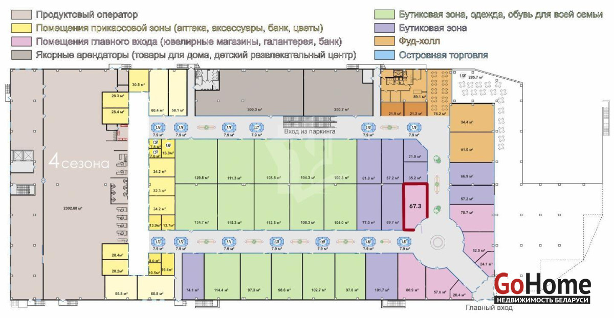 Торговое помещение площадью 67,3 кв.м. в новом ТЦ 4 Сезона, расположено по адресу: ул. Скрипникова 47.