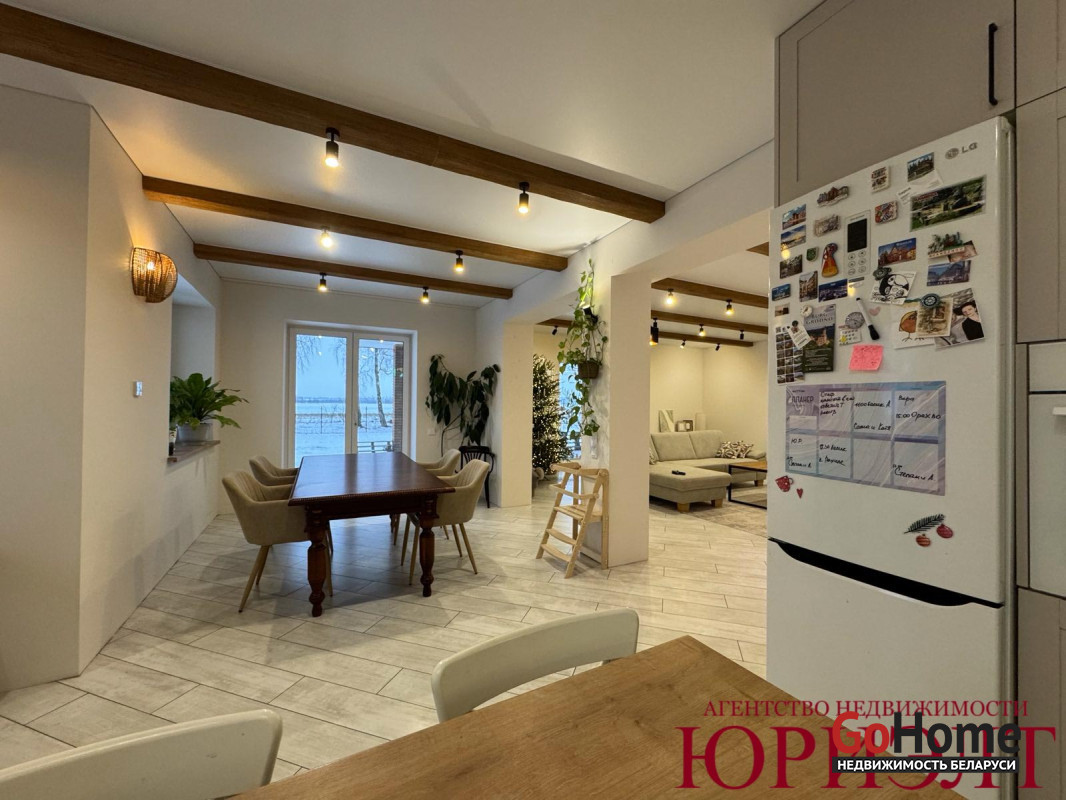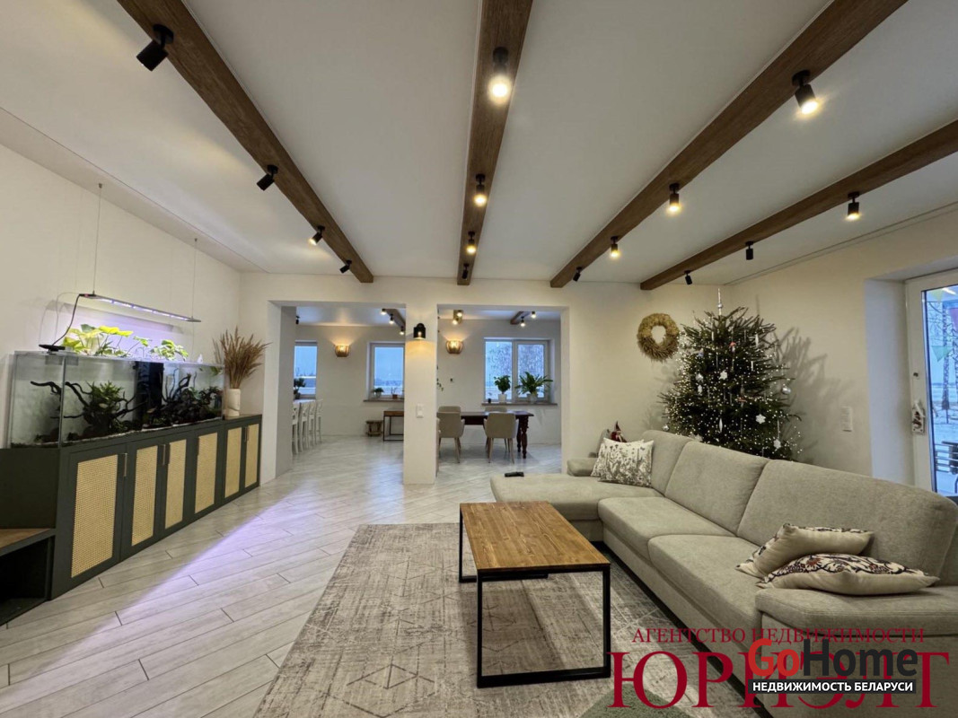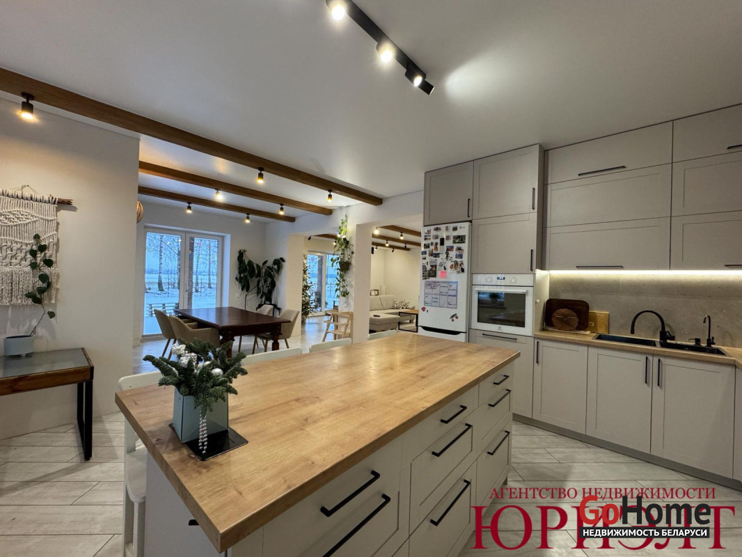В агрогородке Остромечево в живописном месте продается комфортабельный жилой дом 2023 года постройки, построенный на участке 0,15га. Земельный участок в частной собственности. Коммуникации центральные: электричество, газоснабжение, водоснабжение, канализация. Общая площадь дома 166,7м2, жилая - 89,8м2 (3 спальни и гостиная), кухня – столовая - 32м, 2 санузла, терраса - 49м2. Есть вспомогательные помещения: топочная, 2 гардеробные. Фундамент свайно-ростверковый. Стены выложены из блоков ГСМ, облицованы кирпичом. Перекрытия деревянные. Крыша утеплена, накрыта металл черепицей. В доме сделан отличный ремонт. Грамотная планировка дома позволила комфортно расположить спальни и единый комплекс помещений: гостиную – столовую – кухню, откуда можно выйти на террасу. Пристроенная к дому под навесом зона отдыха позволяет круглый год на свежем воздухе отдыхать от шума и городской суеты. Участок выровнен. Огорожен 3д забором. Есть проект дизайна ландшафта участка. На территории залит фундамент для гаража. Невозможно описать место, где построен этот дом - его надо увидеть и влюбиться!