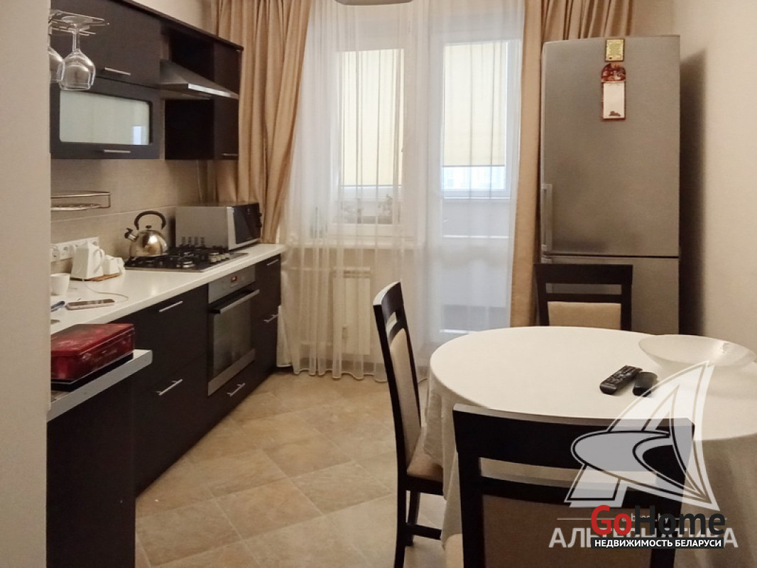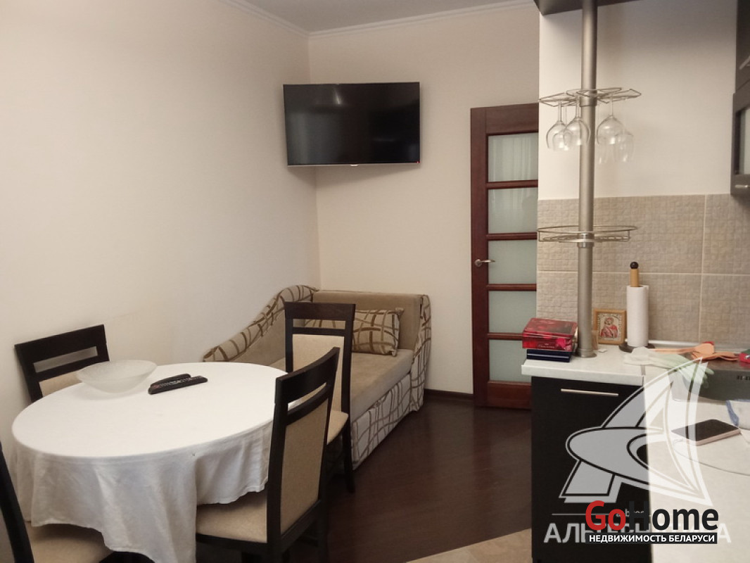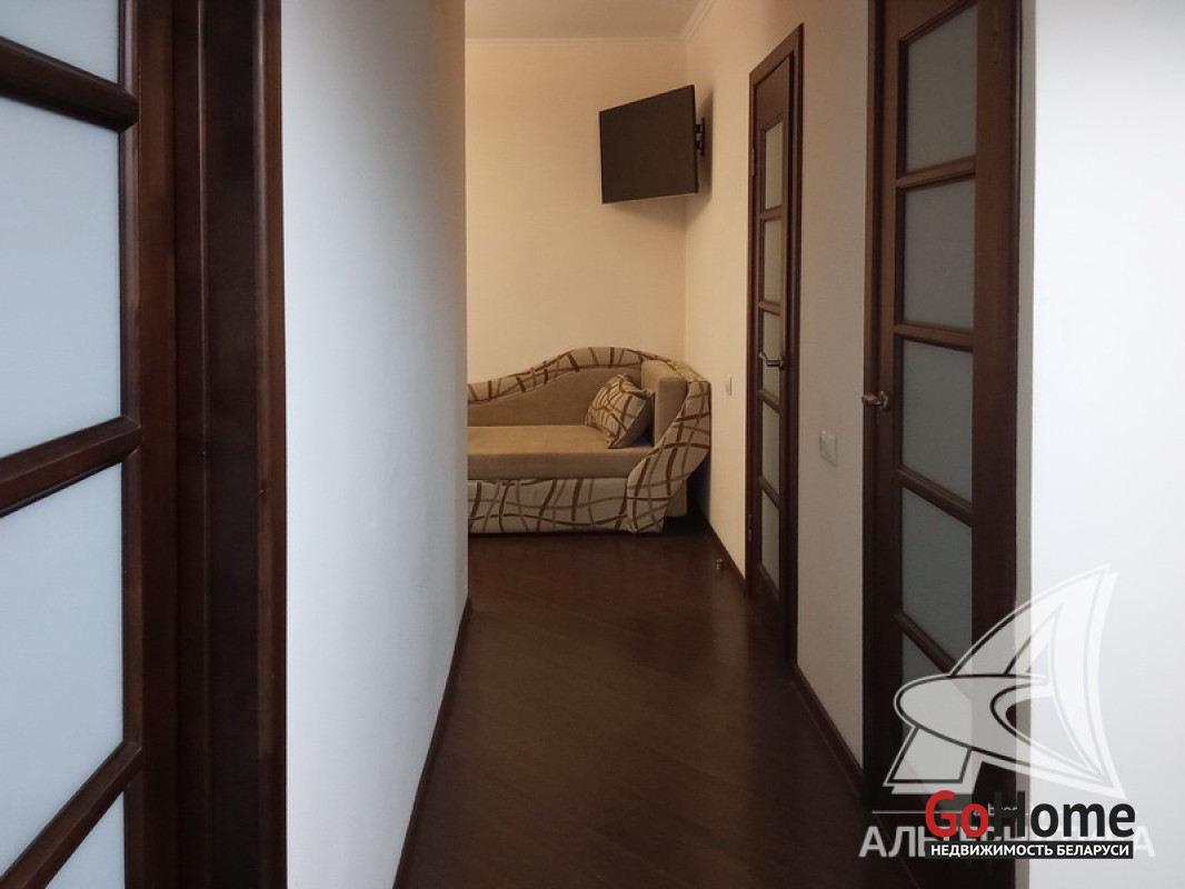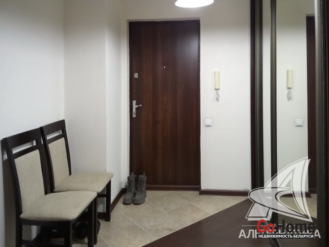1-комнатная квартира, г. Брест, ул. Полевая, 2009 г.п., 3 / 9 панель, 43,6 / 40,9 / 17,0 / 8,7, санузел раздельный, лоджия застеклена, деревянные стеклопакеты, межкомнатные двери - массив, входная дверь металлическая, потолки (2,65 м) - снежка, полы - ламинат, на стенах декоративная окраска, в санузле современная плитка, чугунная ванна, домофон. Кухонный гарнитур, холодильник, два телевизора, тахта, диван, тумба (в гостиной), шкаф-купе, гладильная доска. Квартира с хорошим ремонтом. Все окна выходят во двор. Тамбур на четыре квартиры. Один пассажирский лифт. Во дворе игровая детская площадка, парковка для автомобилей. Лот - 260017