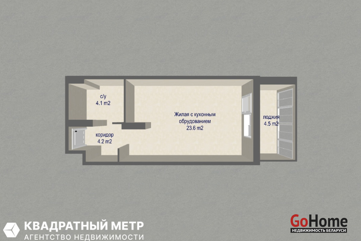 1. Отличная планировка: общая площадь по СНБ – 35,1 м2, жилая площадь 23,6 м2, большая застекленная лоджия - 4,5 м2