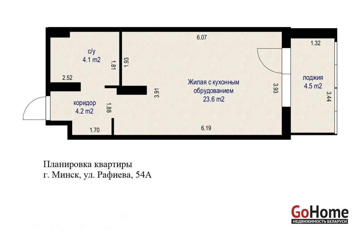 Однокомнатная квартира-студия 35,1 м2, расположенная на ул. Рафиева, 54А