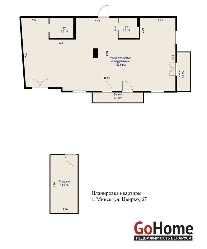 Уникальное преимущество: К квартире прилагается кладовое помещение 14,9 м² в цокольном этаже.